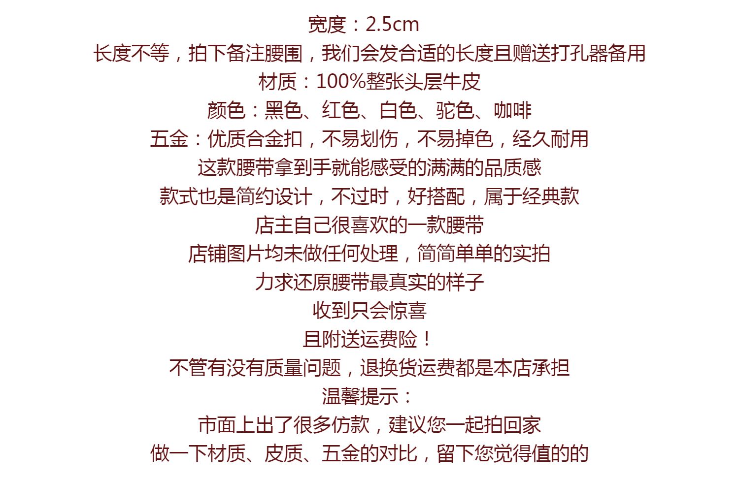 Red simple versatile genuine leather soft belt women's belt women's fashion extended men's belt pure cowhide high-end sense