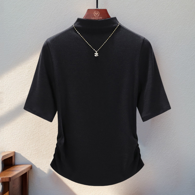 Женская рубашка с полуводолазкой в корейском стиле, весна-осень 2025, новая многослойная футболка со средним рукавом и шерстяным верхом внутри