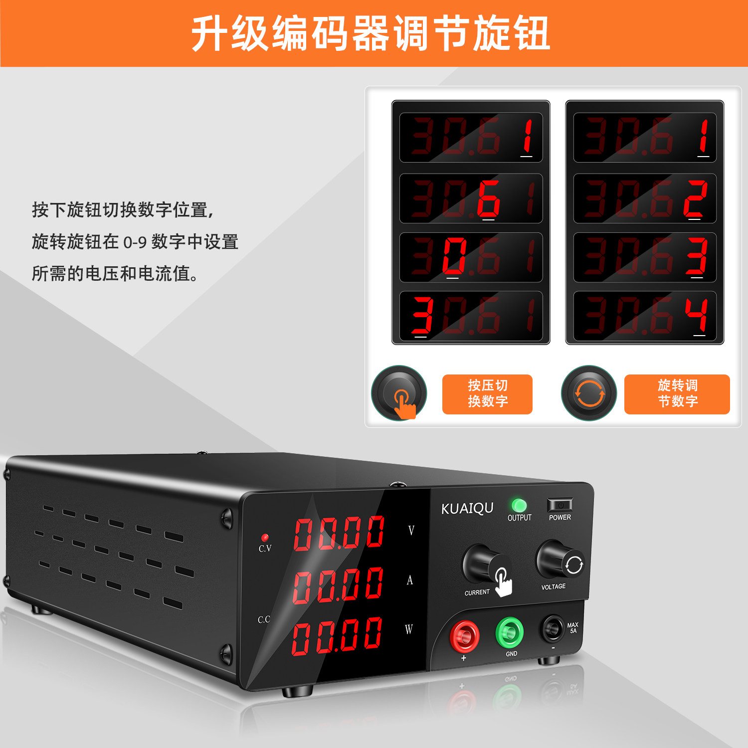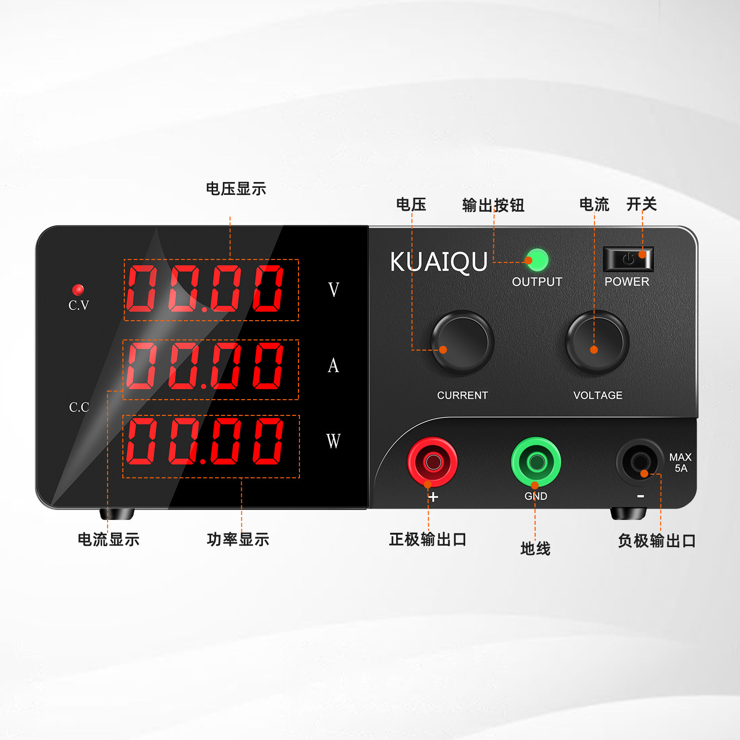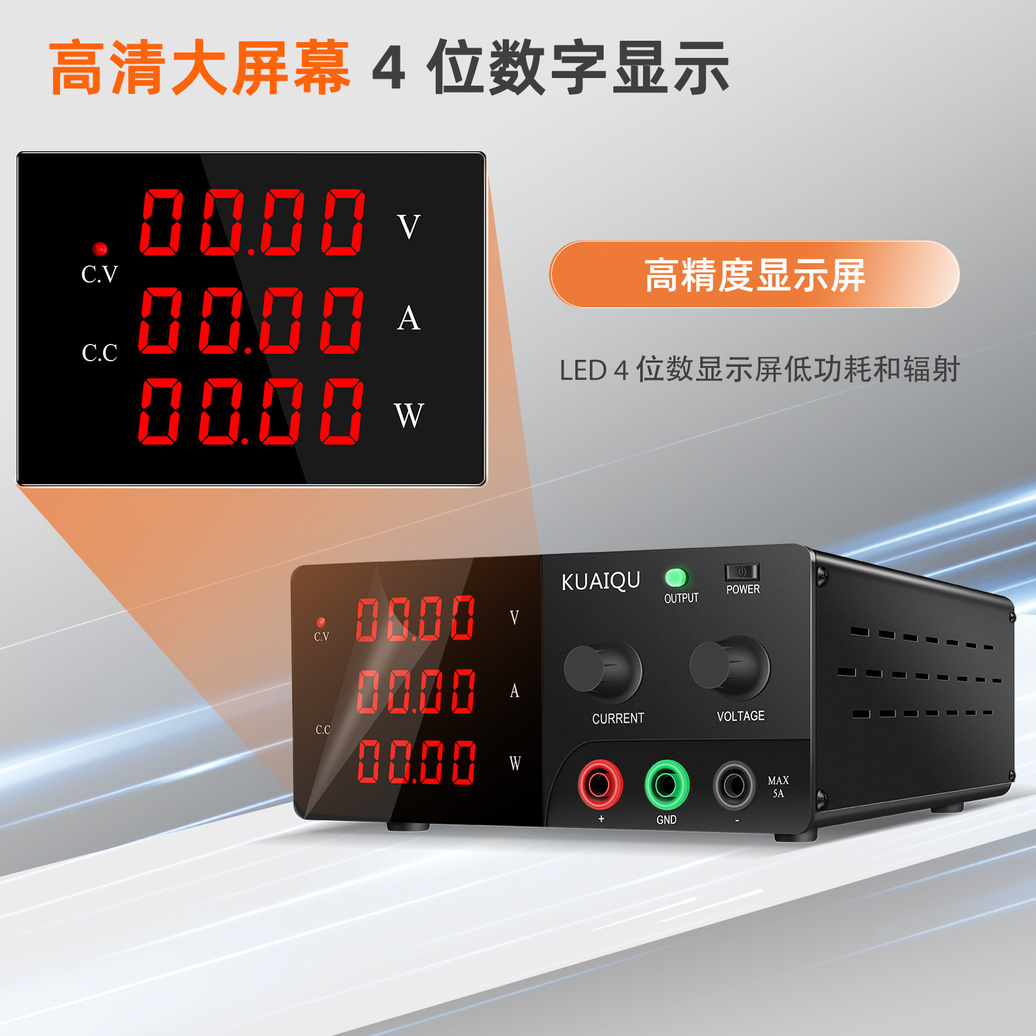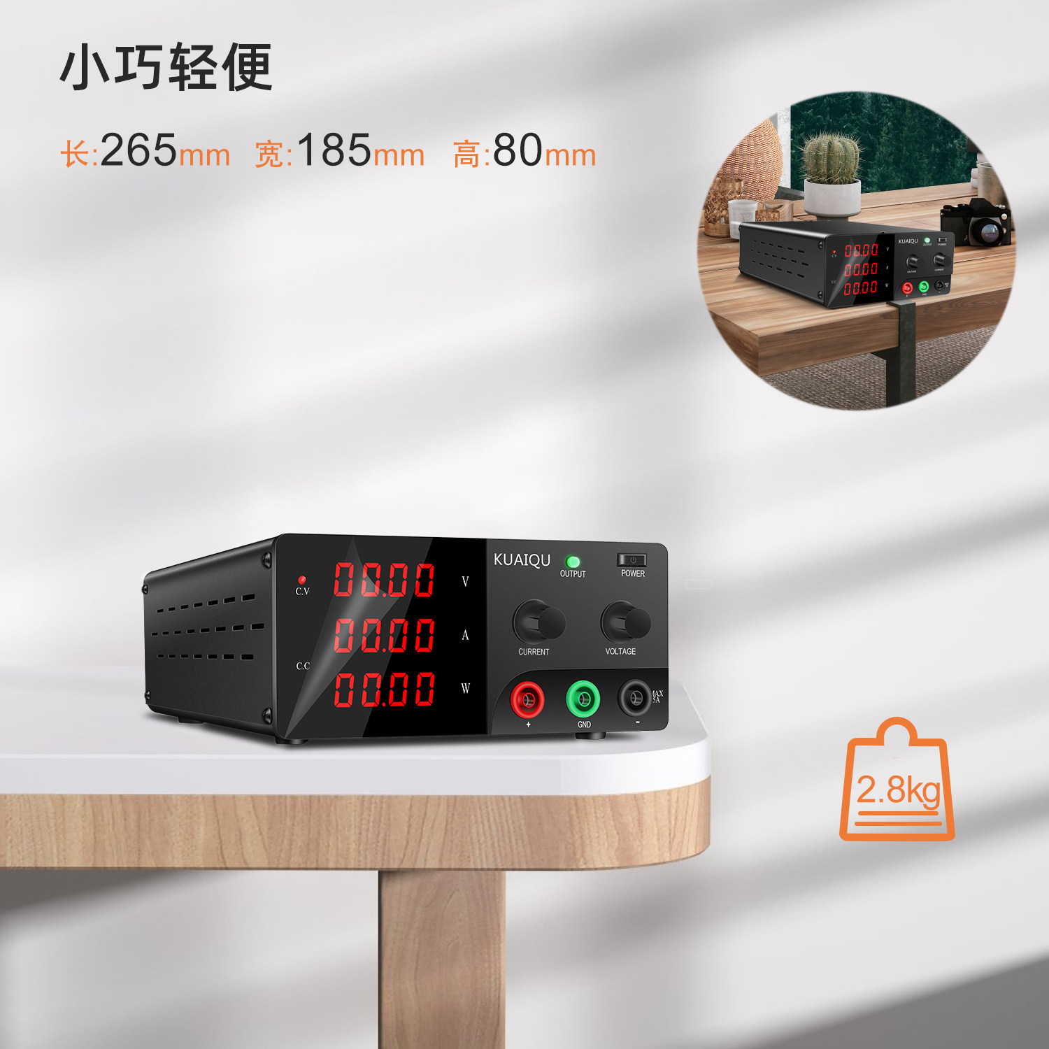 KUAIQU可调直流稳压电源30V60v电机汽车灯测试笔记本维修实验电源