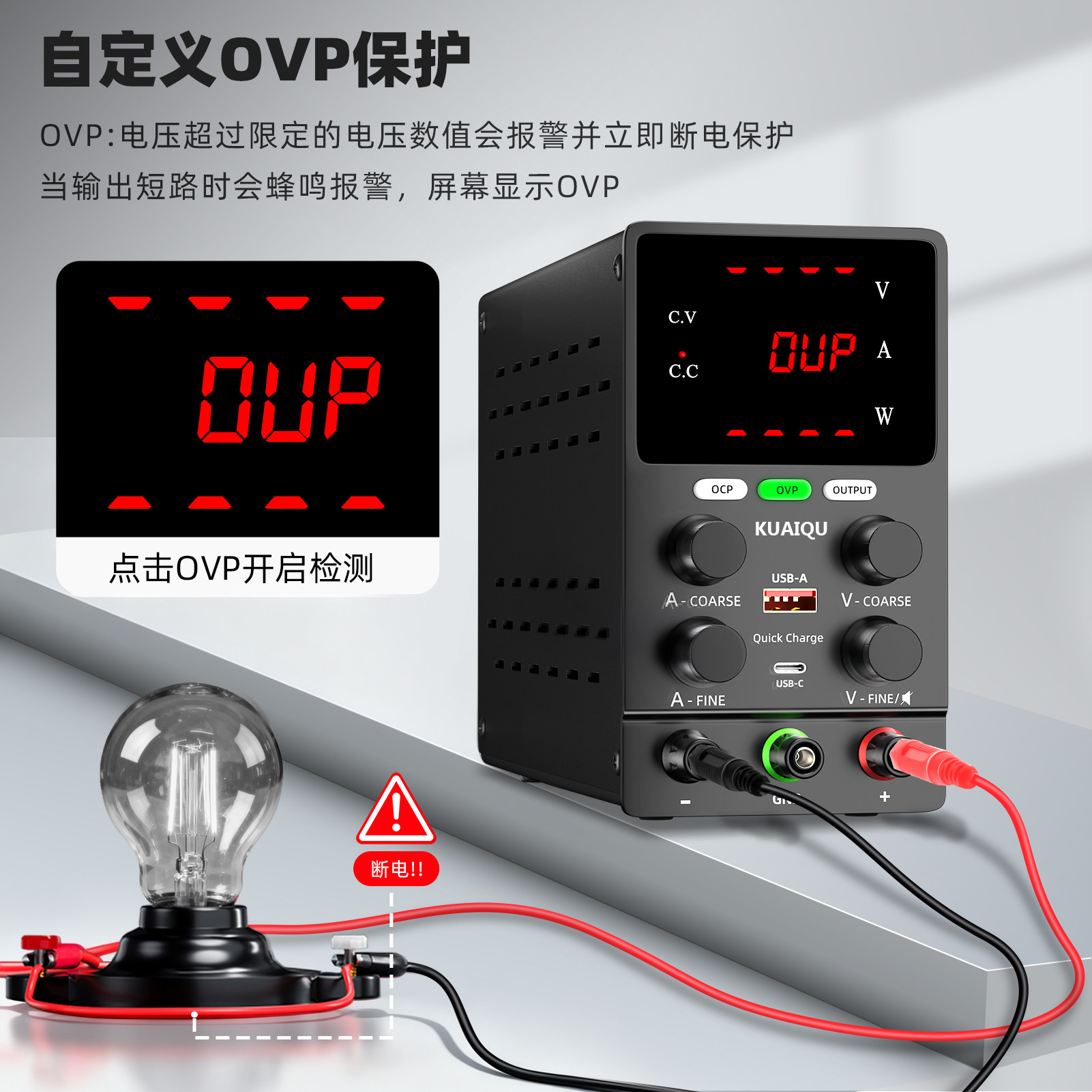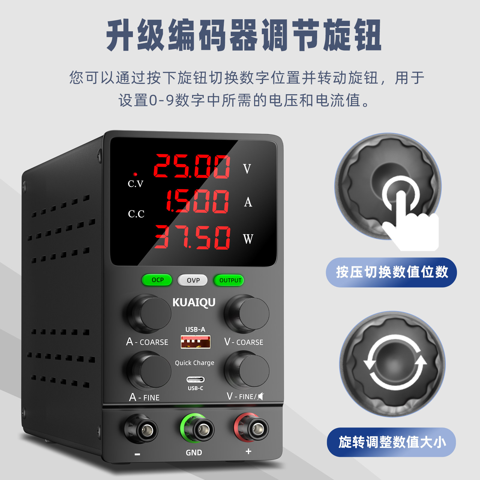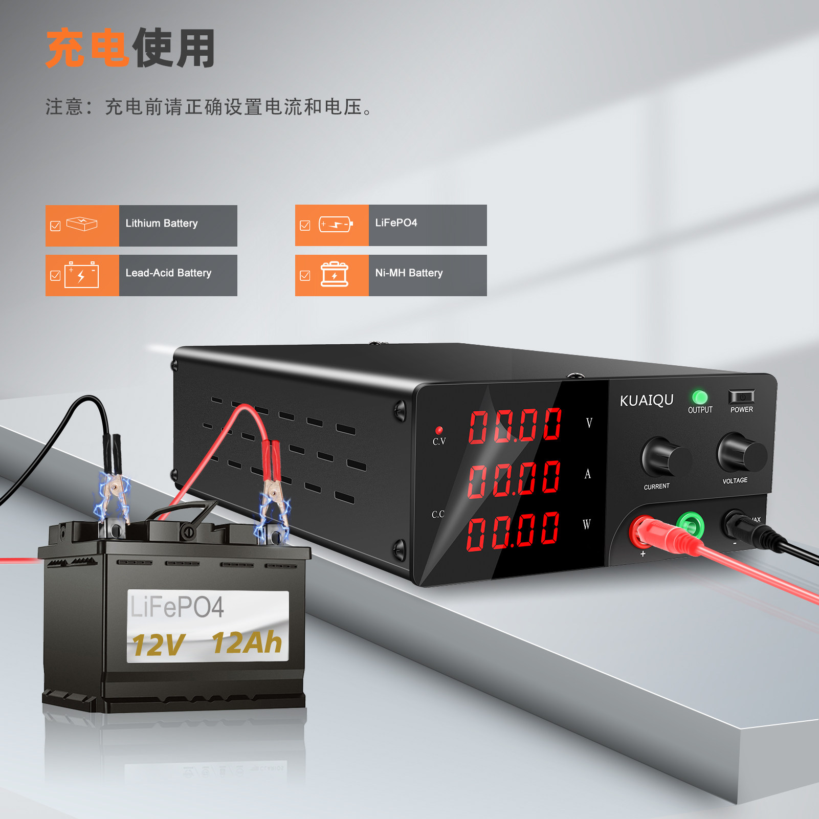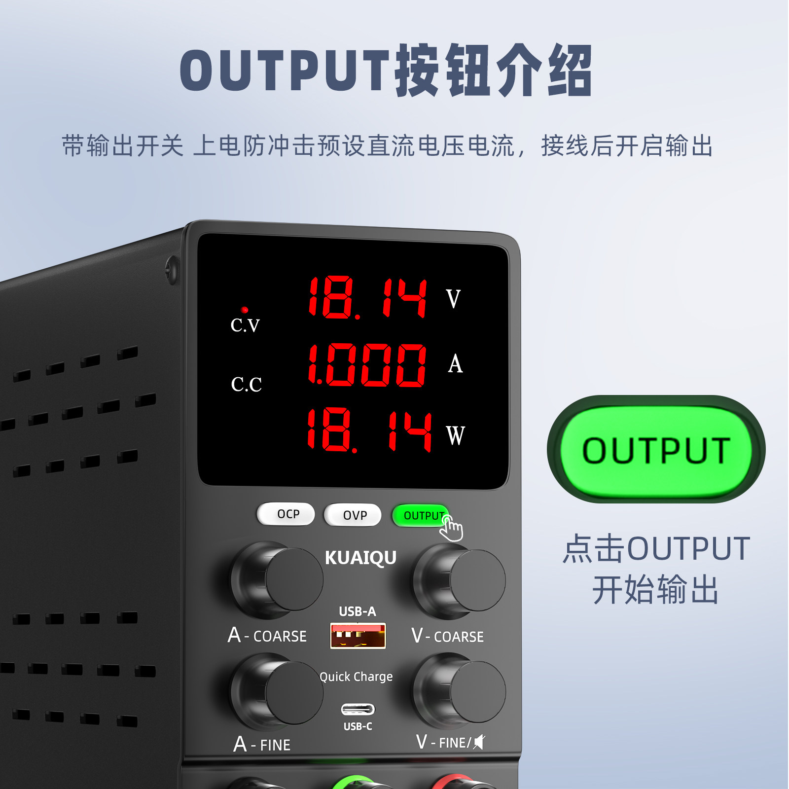 KUAIQU可调直流稳压电源30V60v电机汽车灯测试笔记本维修实验电源