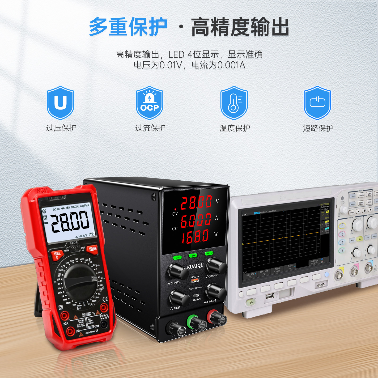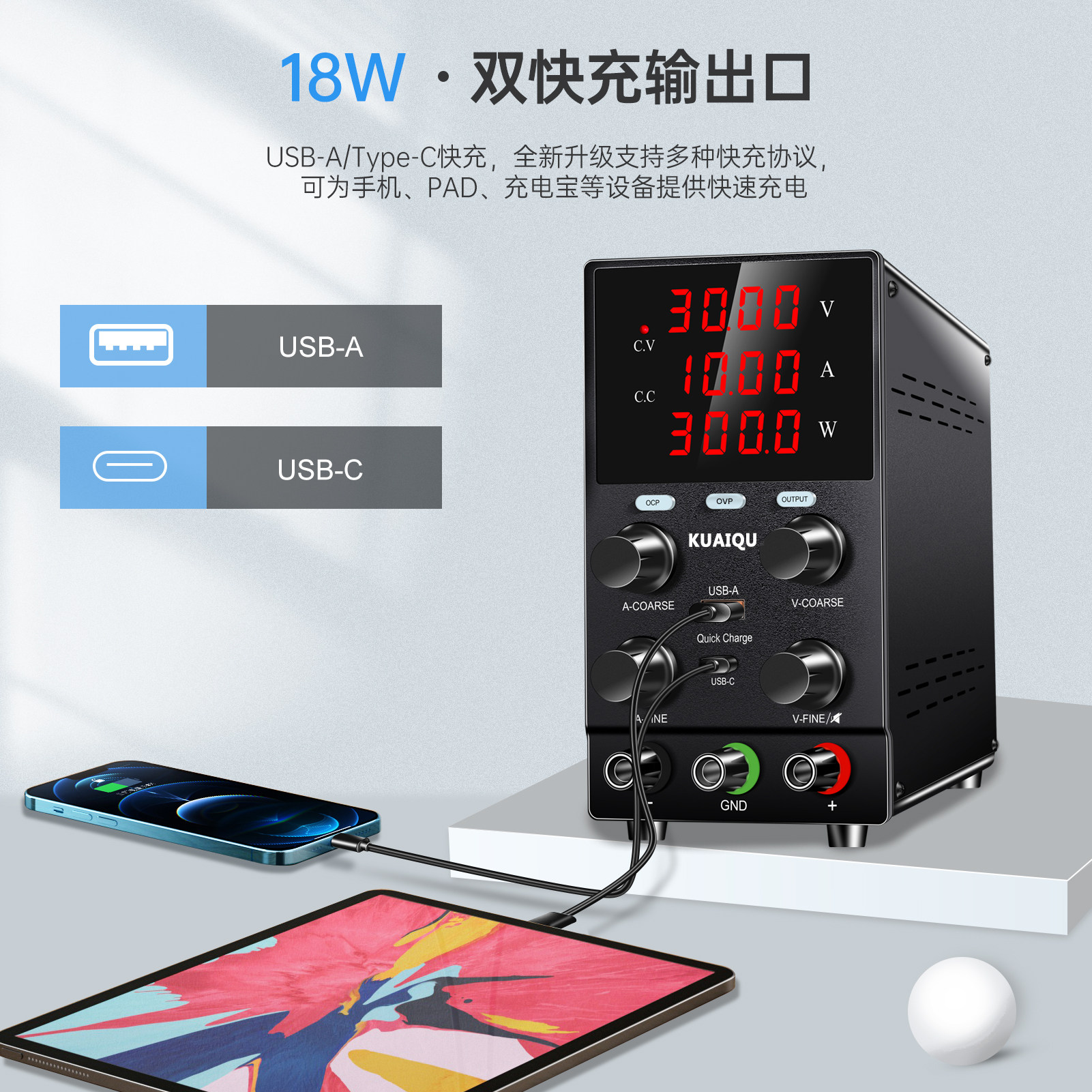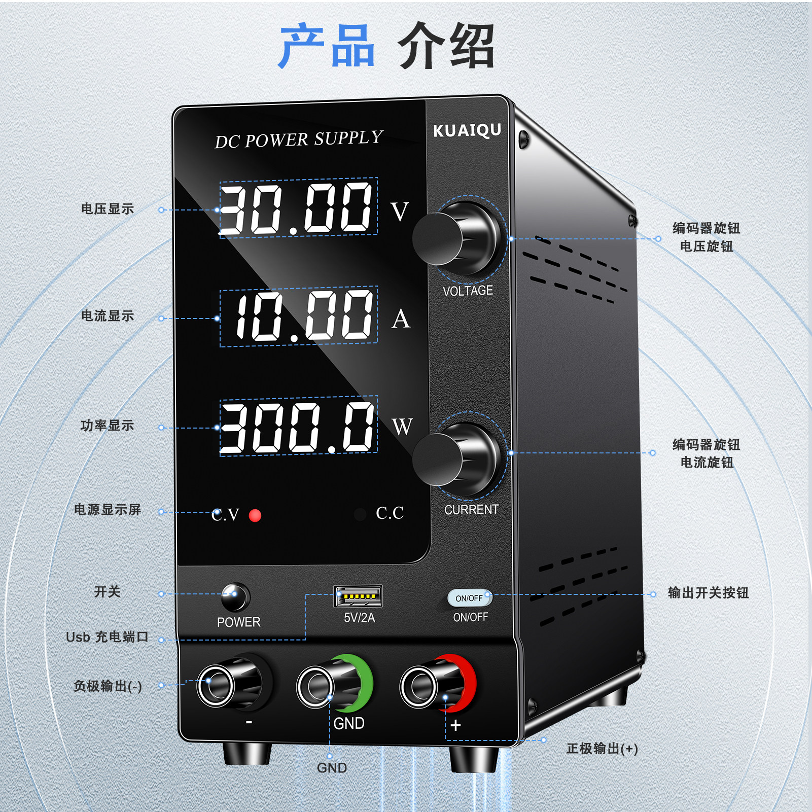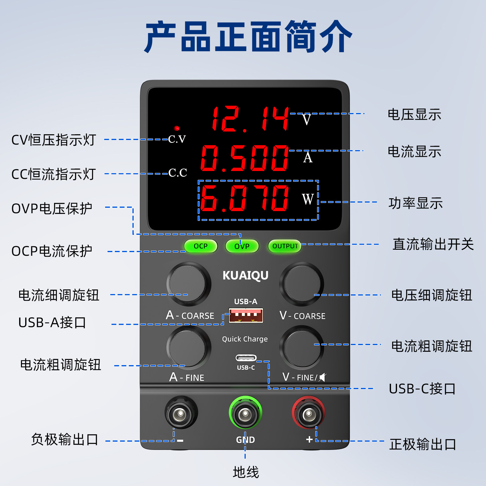 KUAIQU可调直流稳压电源30V60v电机汽车灯测试笔记本维修实验电源