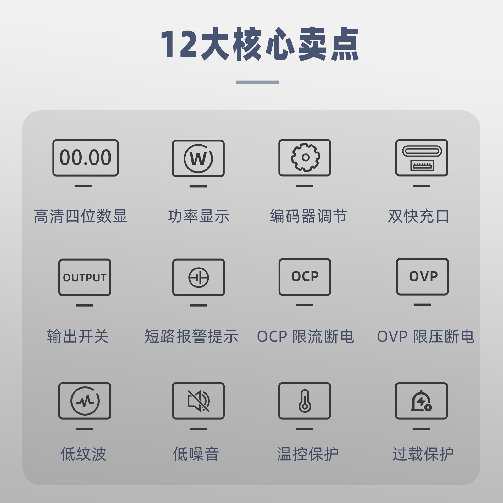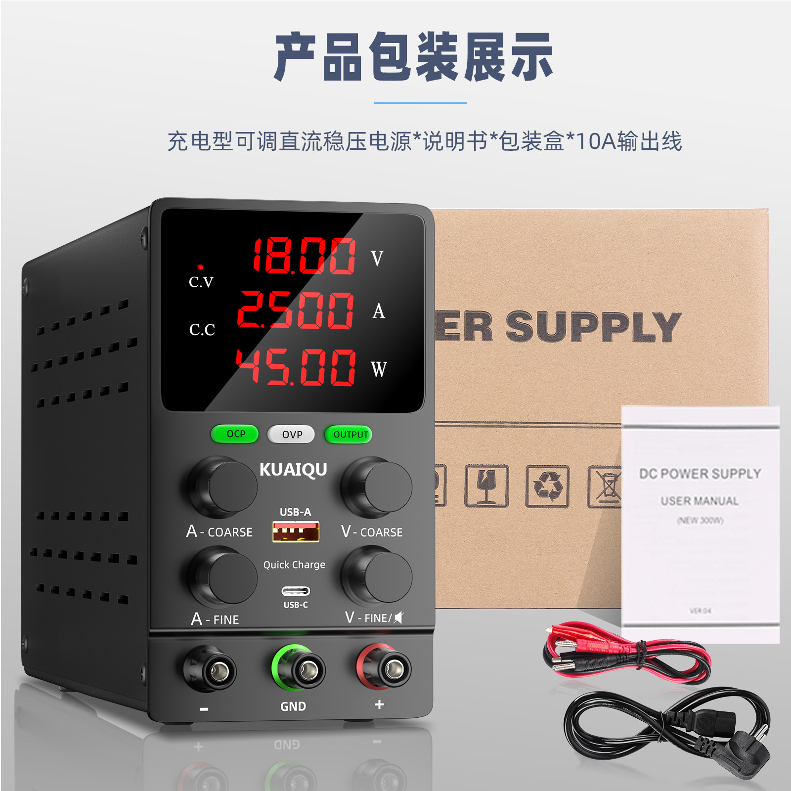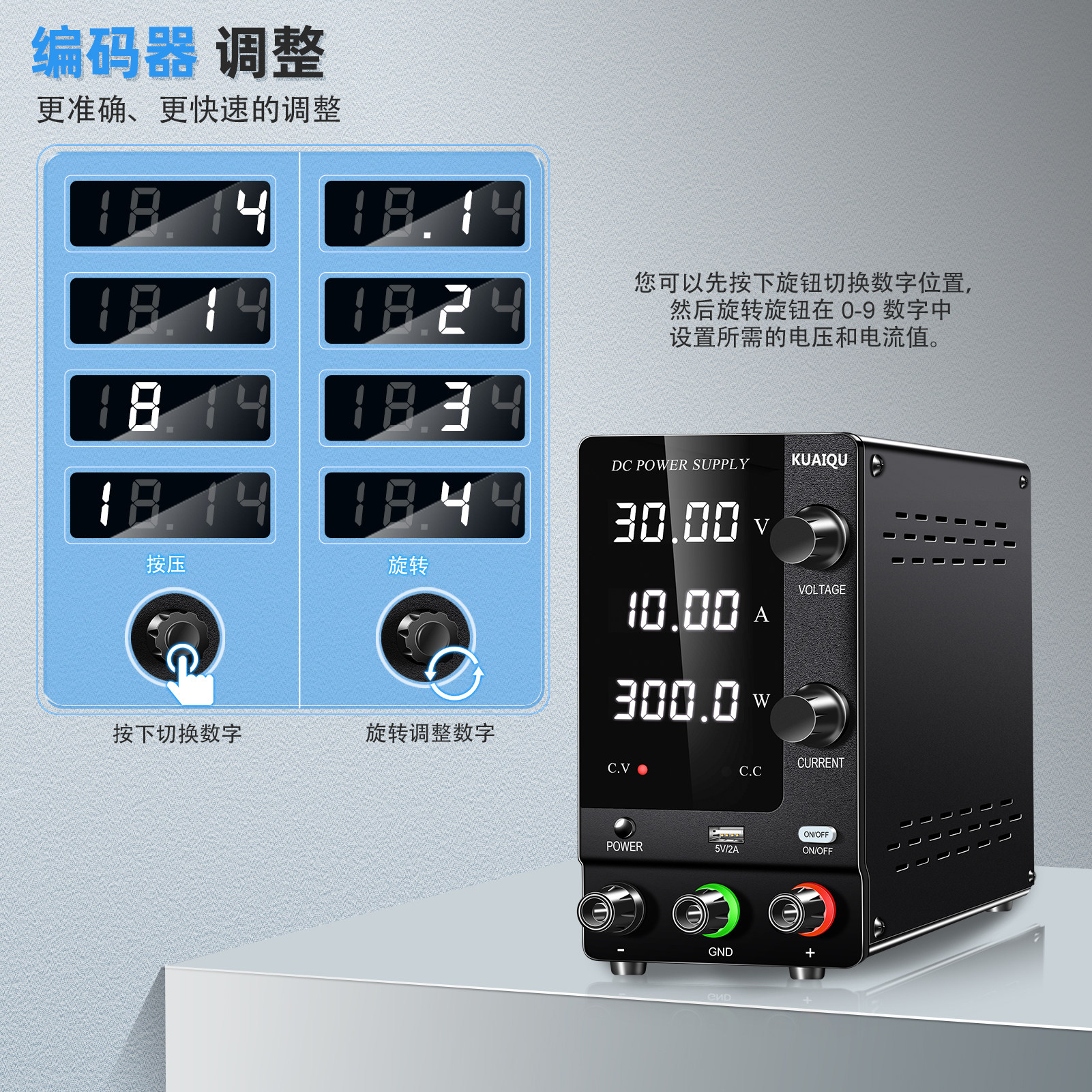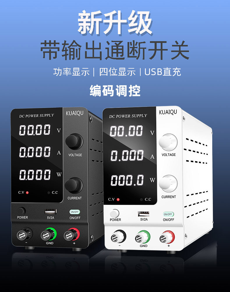 KUAIQU可调直流稳压电源30V60v电机汽车灯测试笔记本维修实验电源