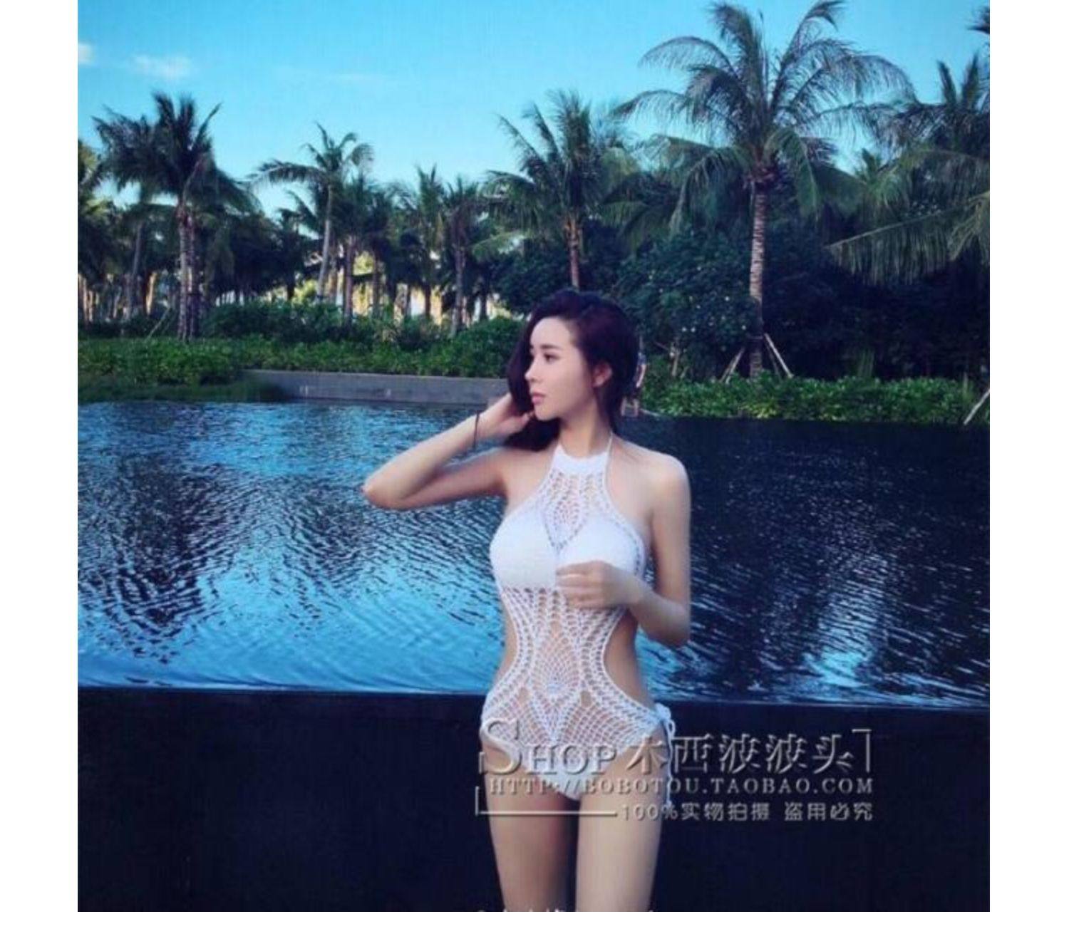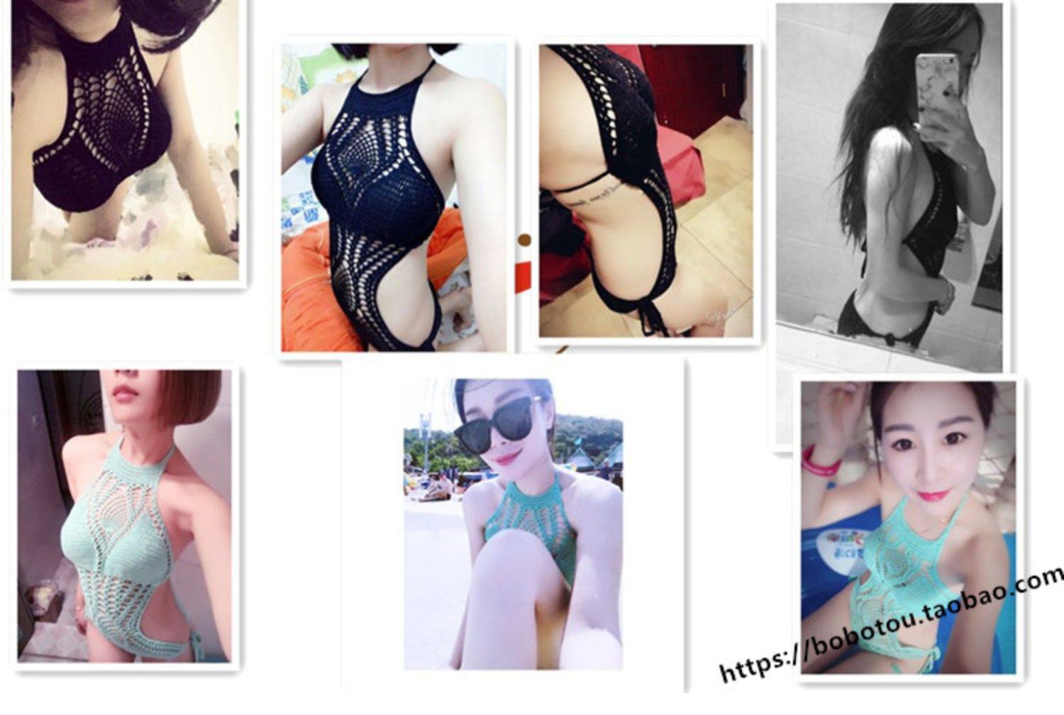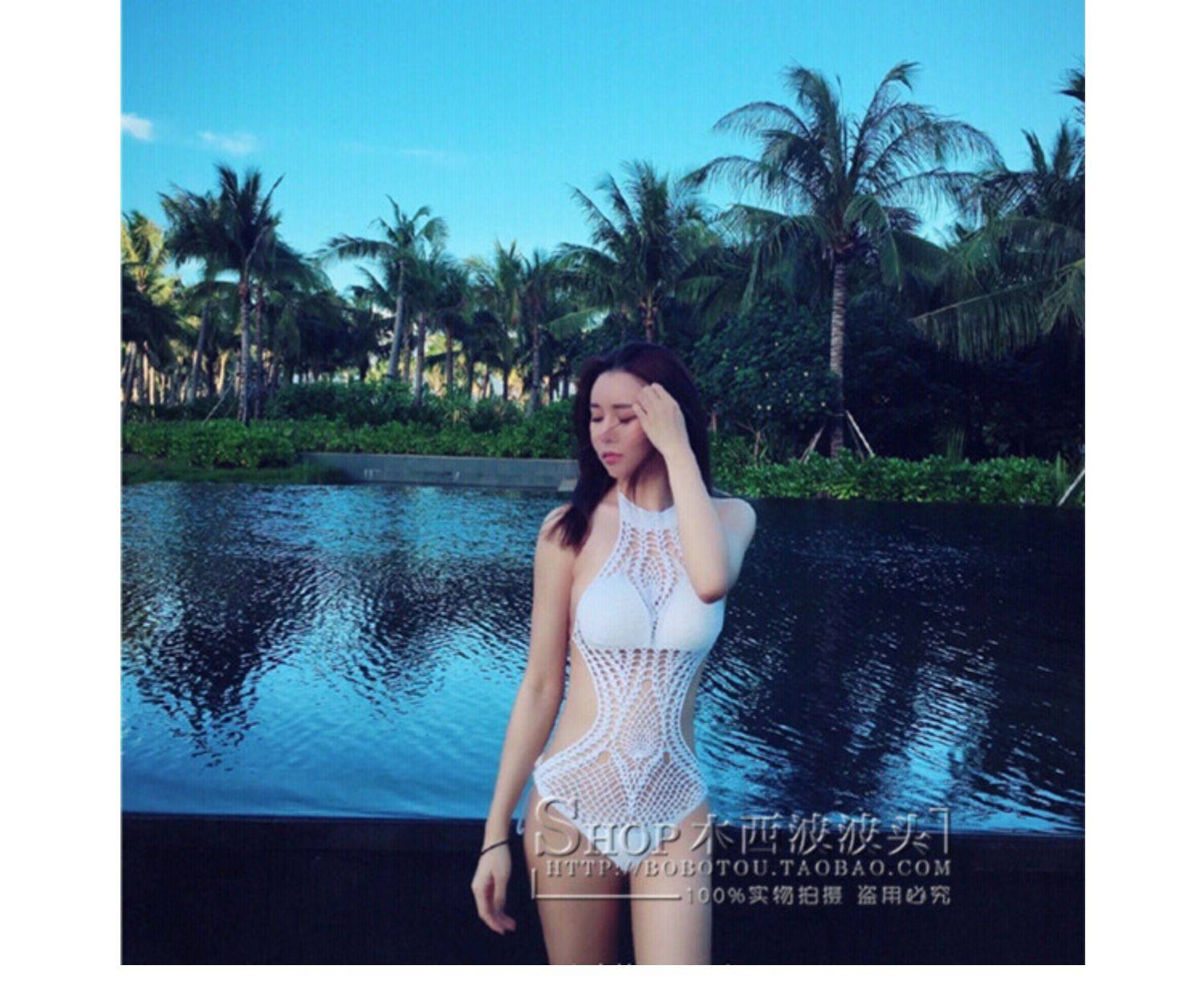 European and American sexy empty swimsuit bikini handmade knitted yarn bikini hot spring gathering swimsuit women