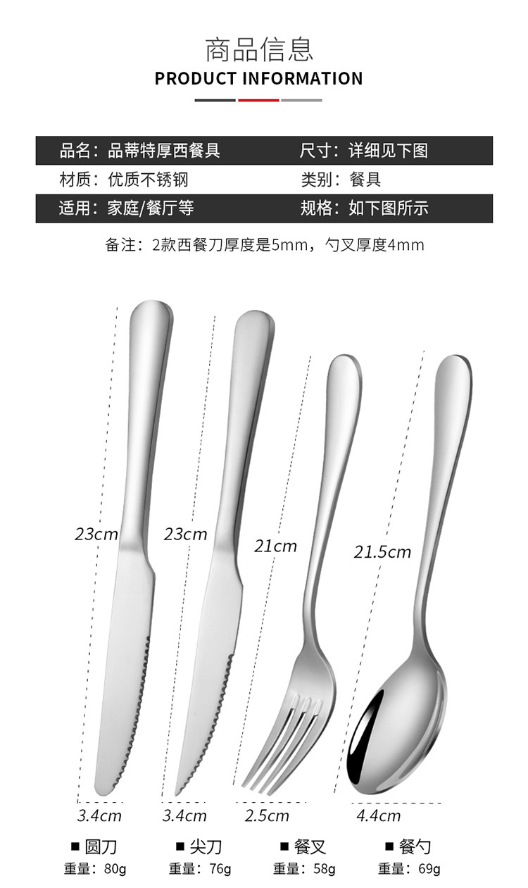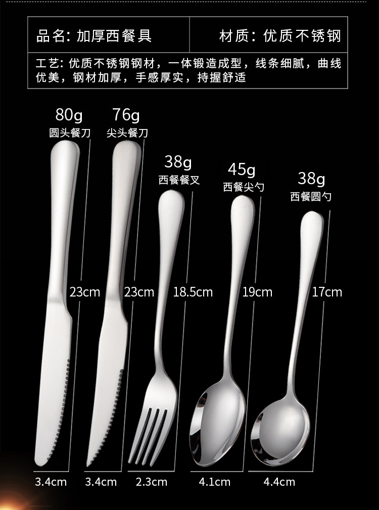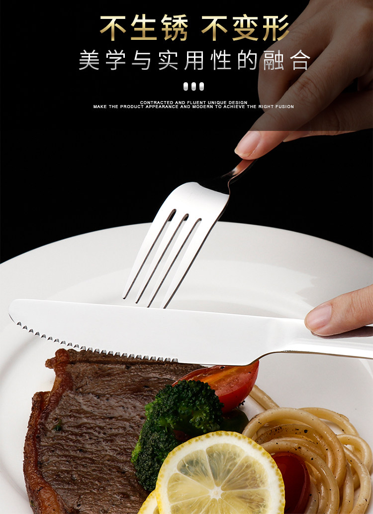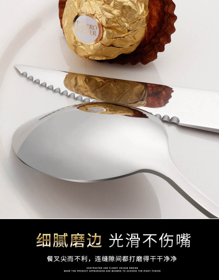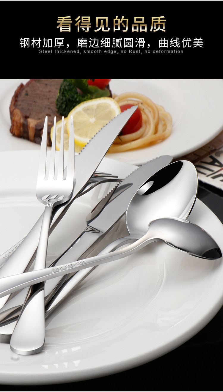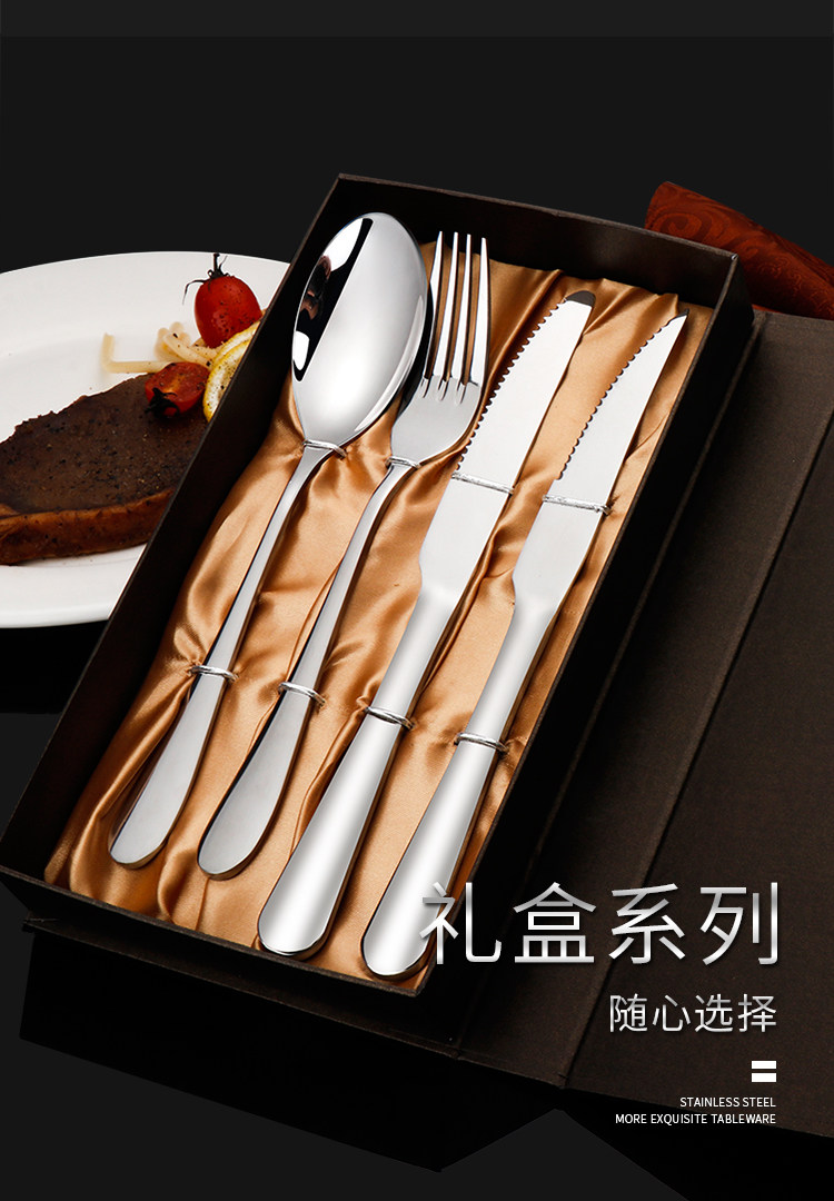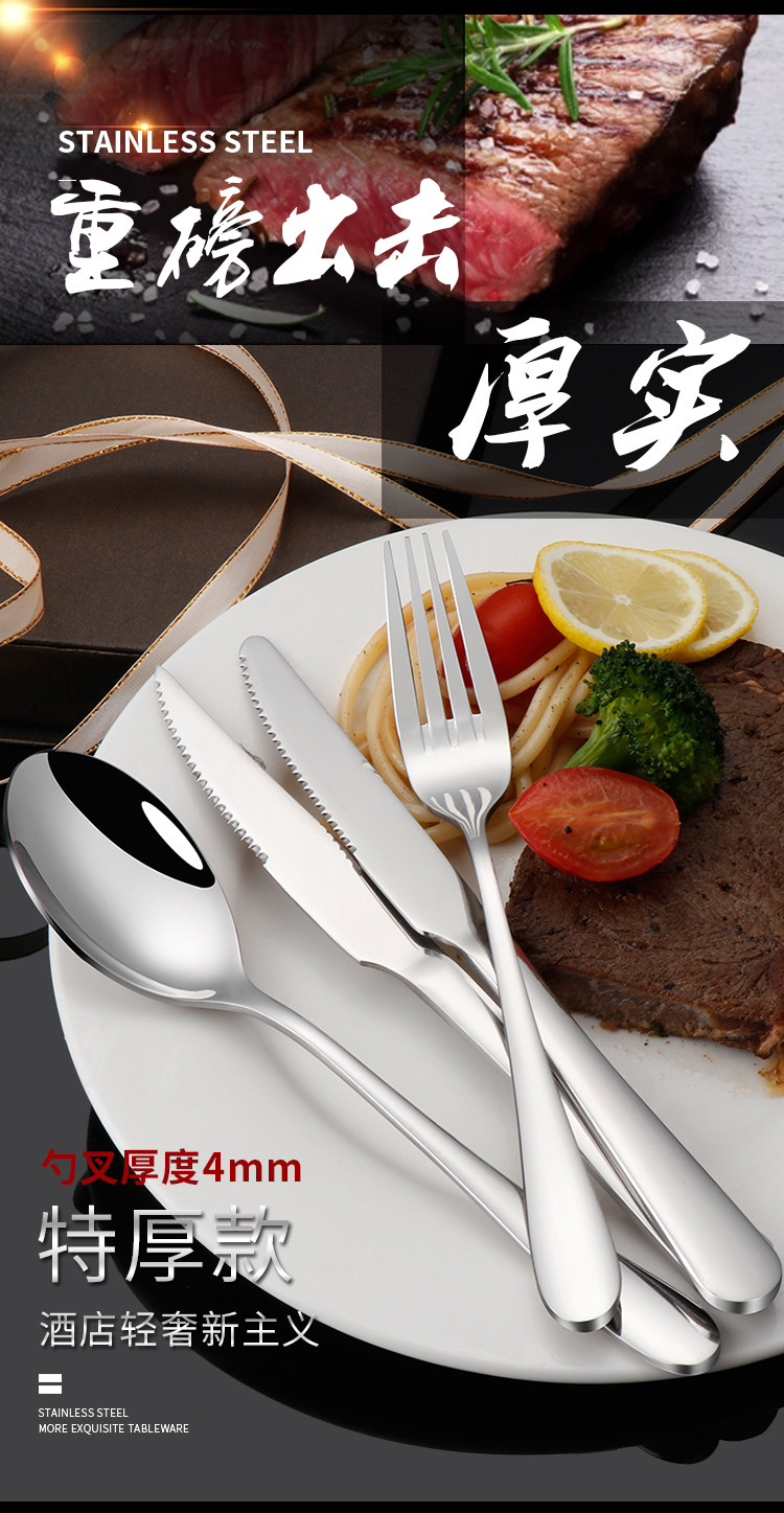 Stainless steel western cutlery three-piece set of knife, fork and spoon, full set of steak knife and fork, two-piece set, household european style thickened