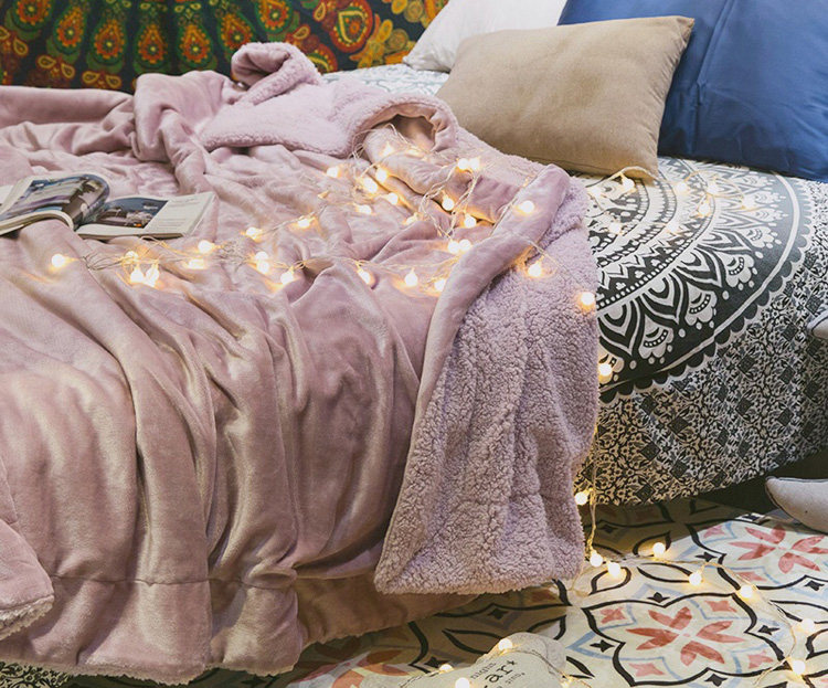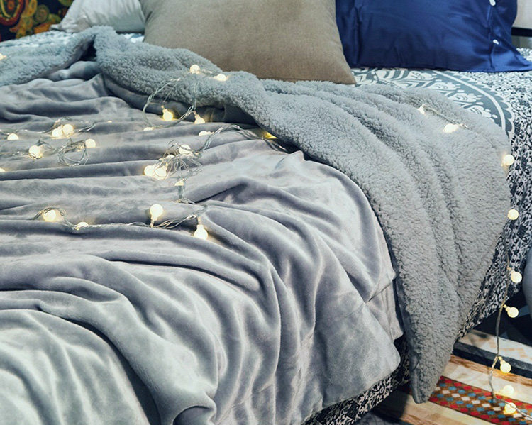 Macaron double layer lamb velvet blanket thickened single and double blanket coral velvet blanket winter