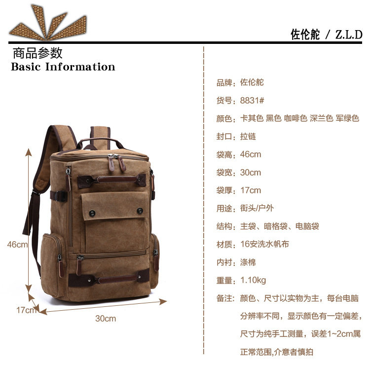 Retro European and American foreign trade workwear canvas backpack men's commuter travel bag student backpack men's computer bag school bag