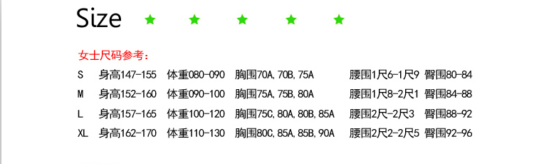 China (cm) 160-165/84-86 165-170 / 88-90 167-172 / 92-96 168-173 / 98-102 170-176 / 106-110