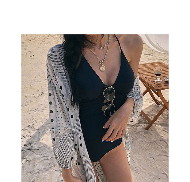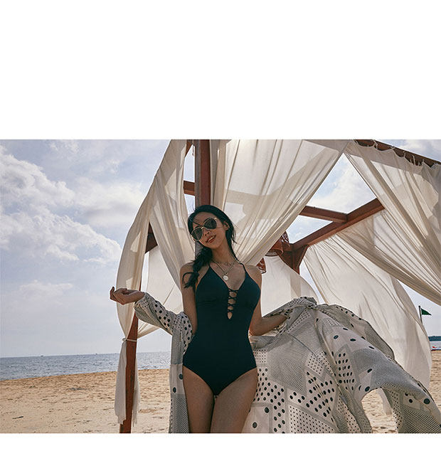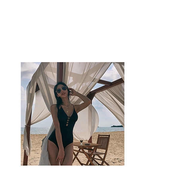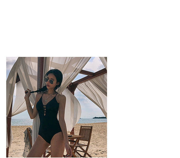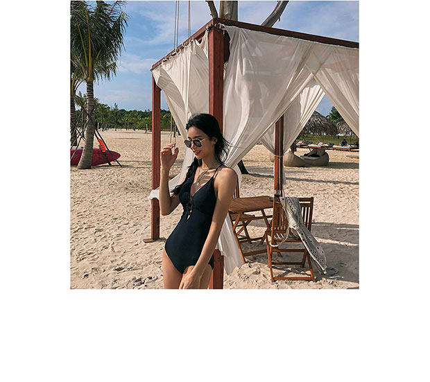 Oferta especial nuevo traje de baño de una pieza para mujer que cubre el vientre, adelgazante y sexy bikini triangular de manga larga sin espalda vacaciones coreanas negro