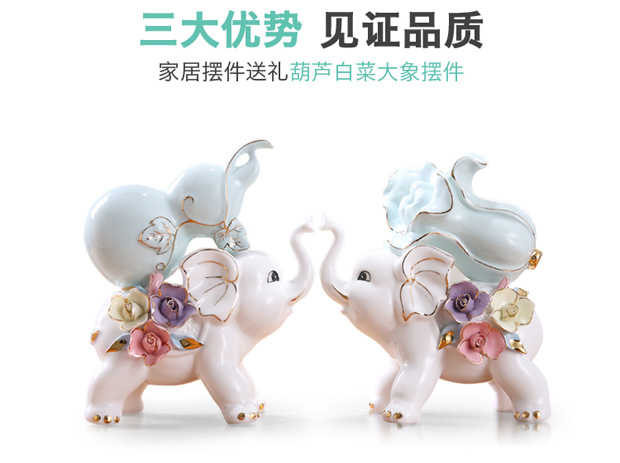 葫芦大象摆件创意陶瓷客厅电视柜酒柜轻奢招财装饰品乔迁新居礼品