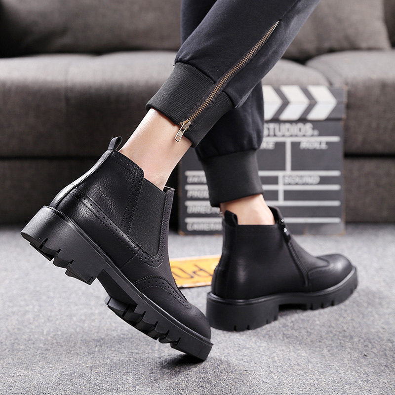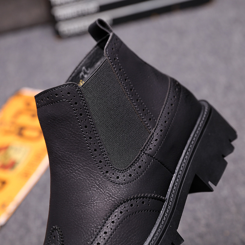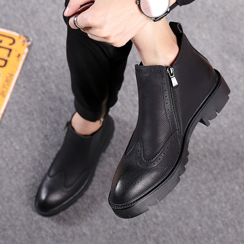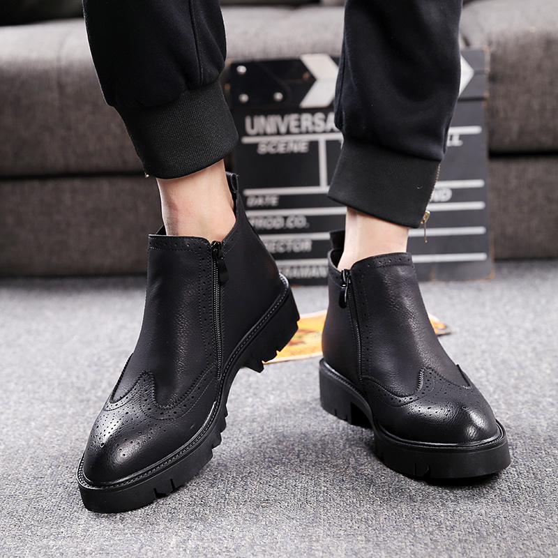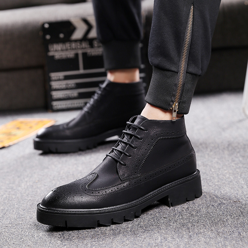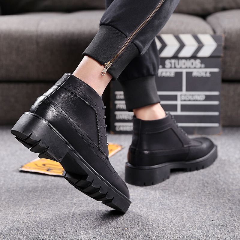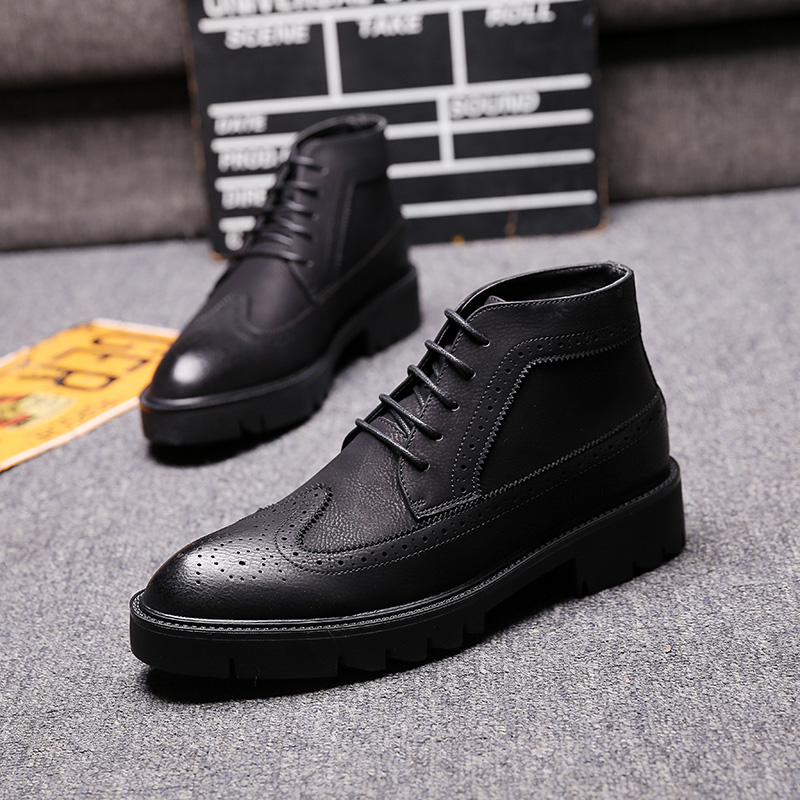 Brogue men's shoes autumn and winter plus velvet high-top leather shoes men's Martin boots British short boots Korean style trendy mid-top leather boots