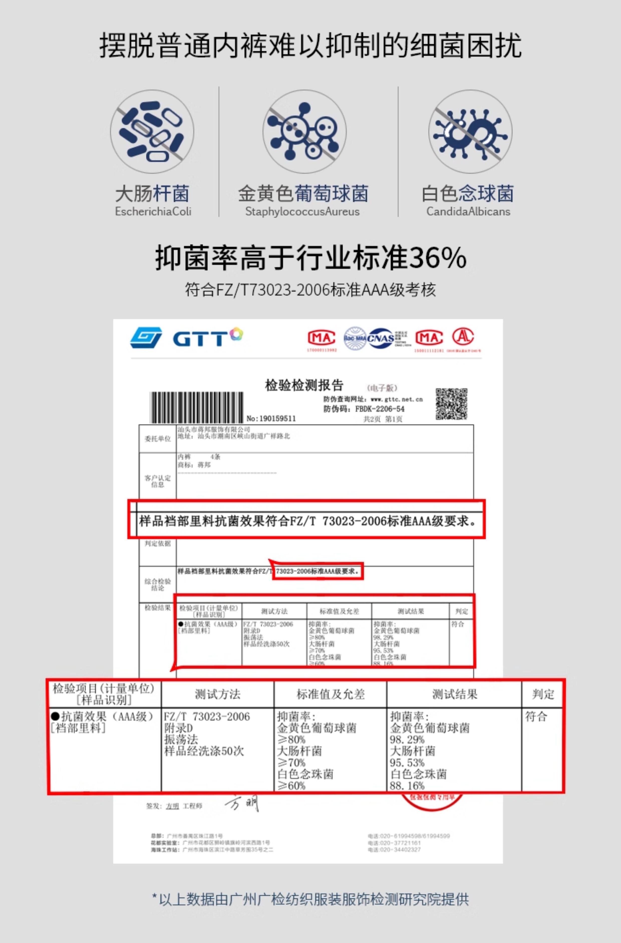 Crotch material composition Modal fiber (Modal) 47.5% cotton 47.5% polyurethane elastic fiber (spandex) 5%