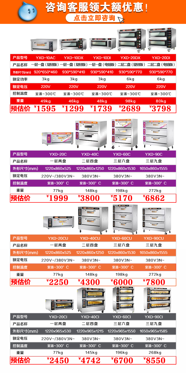 颜色分类 咨询客服领取大额优惠卷,YXD-10DX电热一层一盘机械款,YXD-20DX电热二层二盘机械款,YXD-10DI电热一层一盘电脑款,YXD-20DI电热二层二盘电脑款,YXD-20C电热一层二盘机械款,YXD-40C电热二层四盘机械款,YXD-60C电热三层六盘机械款,YXD-90C电热三层九盘机械款,YXD-20CI一层两盘电脑版玻璃门款,YXD-30CI一层三盘电脑版玻璃门款,YXD-40CI 两层四盘电脑版玻璃门款,YXD-60CIS两层六盘电脑版玻璃门款,YXD-60CI三层六盘电脑版玻璃门款,YXD-90CI三层九盘电脑版玻璃门款,YXD-20CU一层两盘电脑版钢门款,YXD-30CU一层三盘电脑版钢门款,YXD-40CU 两层四盘电脑版钢门款,YXD-60CUS两层六盘电脑版钢门款,YXD-60CU三层六盘电脑版钢门款,YXD-90CU三层九盘电脑版钢门款,YXD-20BCF电热醒烤组合(2+10),YXD-40BCF电热醒烤组合(4+10),一层石板(订制7-10个工作日),一层蒸汽(订制7-10个工作日)