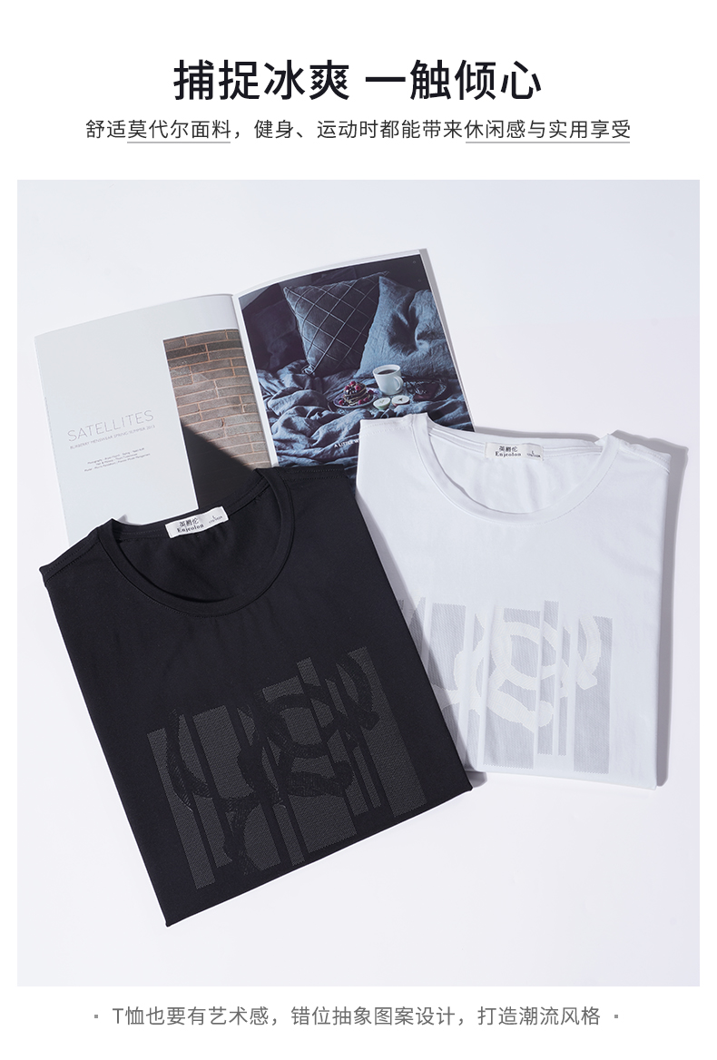 Yingjuerun smooth modal cotton summer men's short-sleeved T-shirt trendy brand printing European and American men's decoration tops