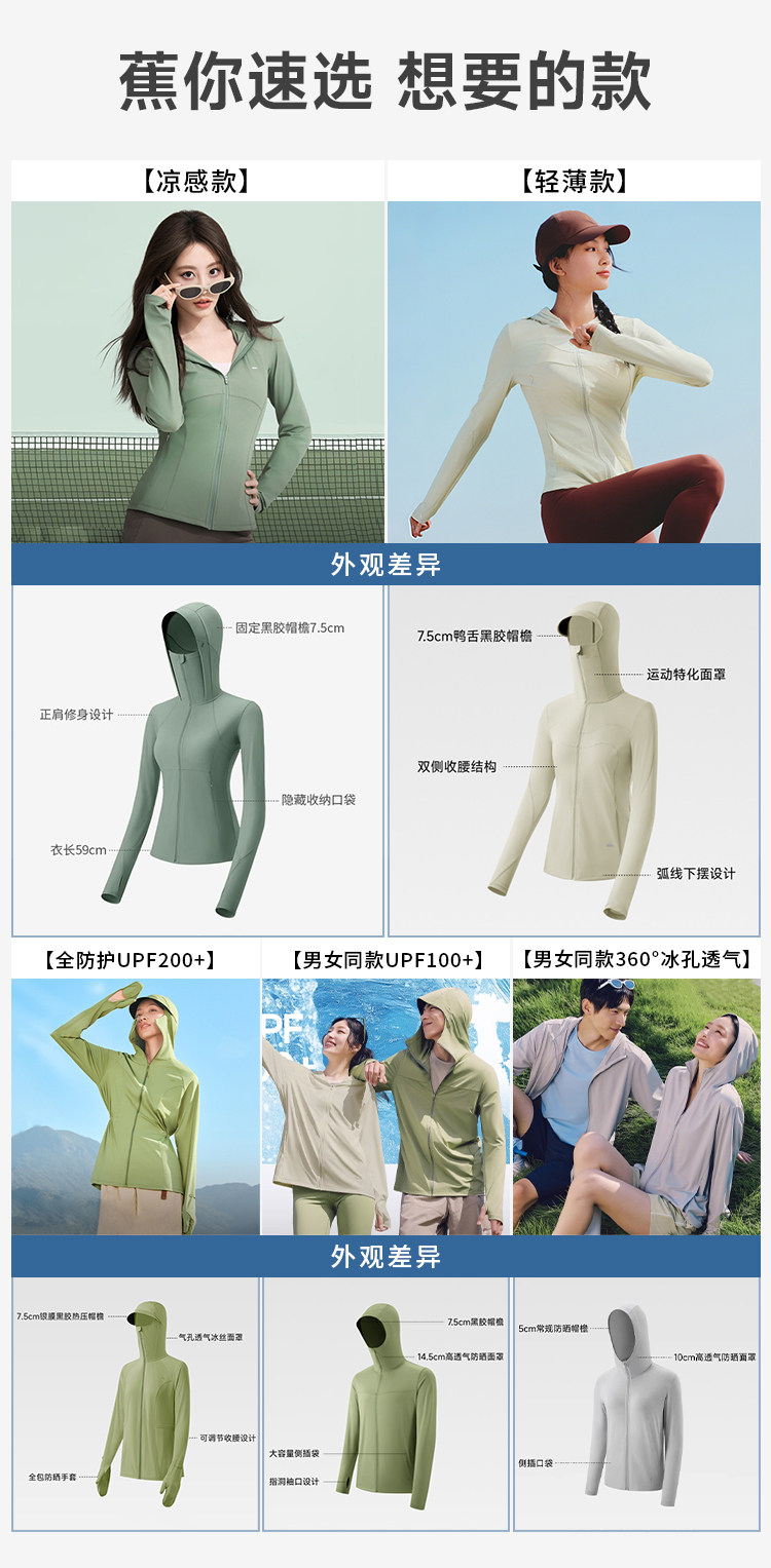 蕉下防晒衣女2025新款夏季款防紫外线修身帽檐轻薄冰丝防晒服女款