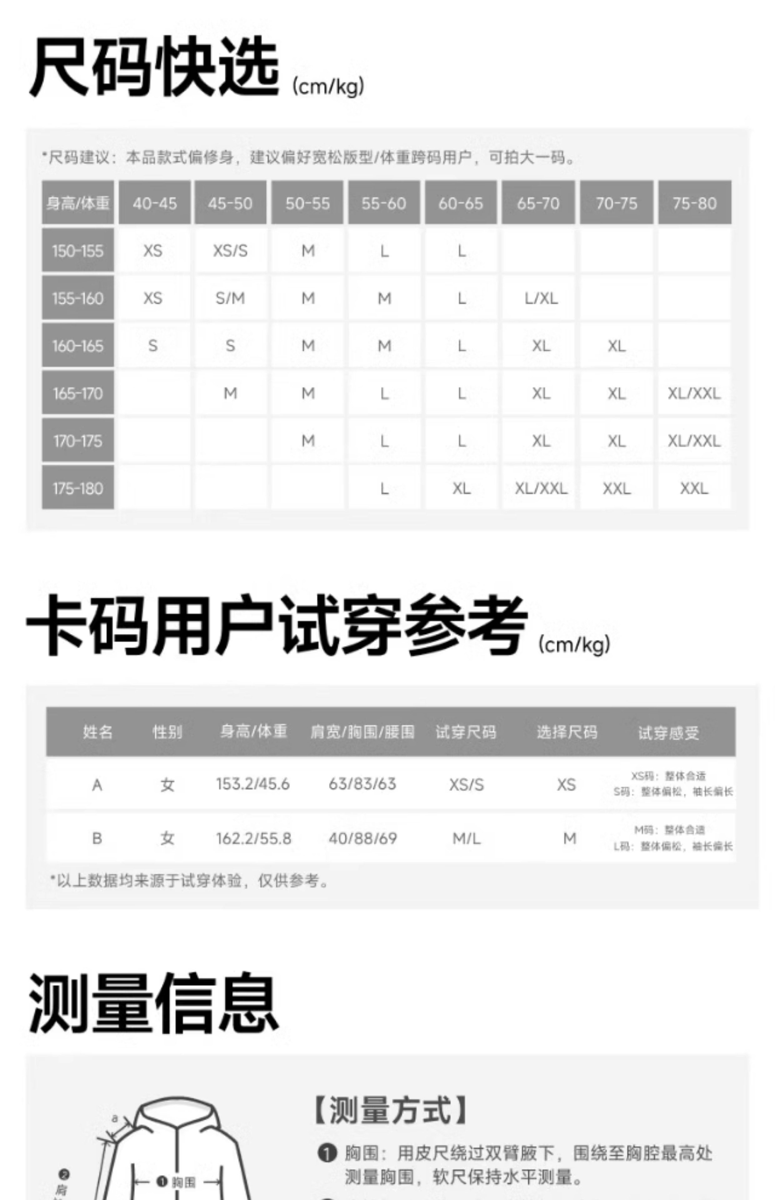 China (cm) 160-165/84-86 165-170 / 88-90 167-172 / 92-96 168-173 / 98-102 170-176 / 106-110