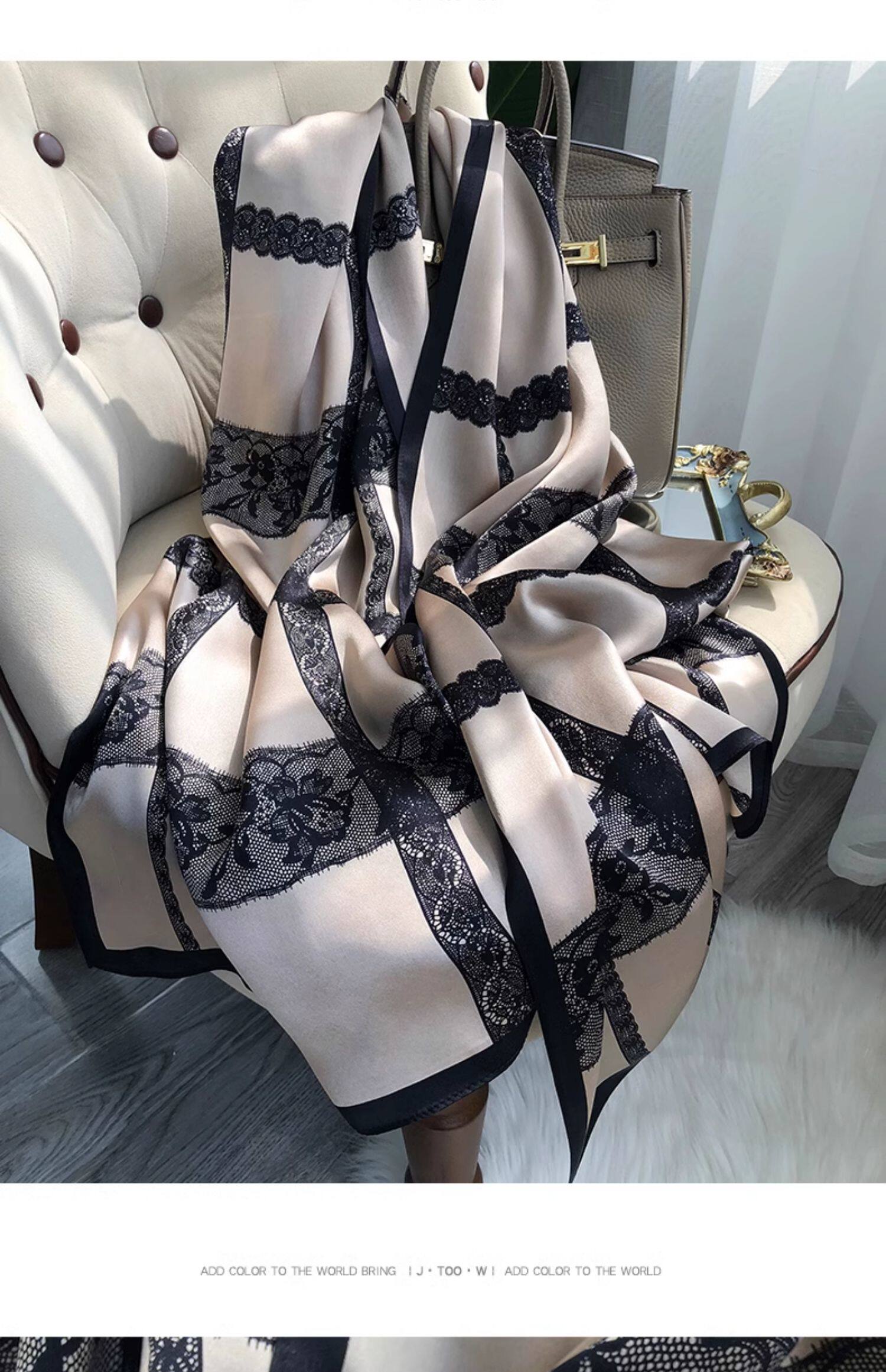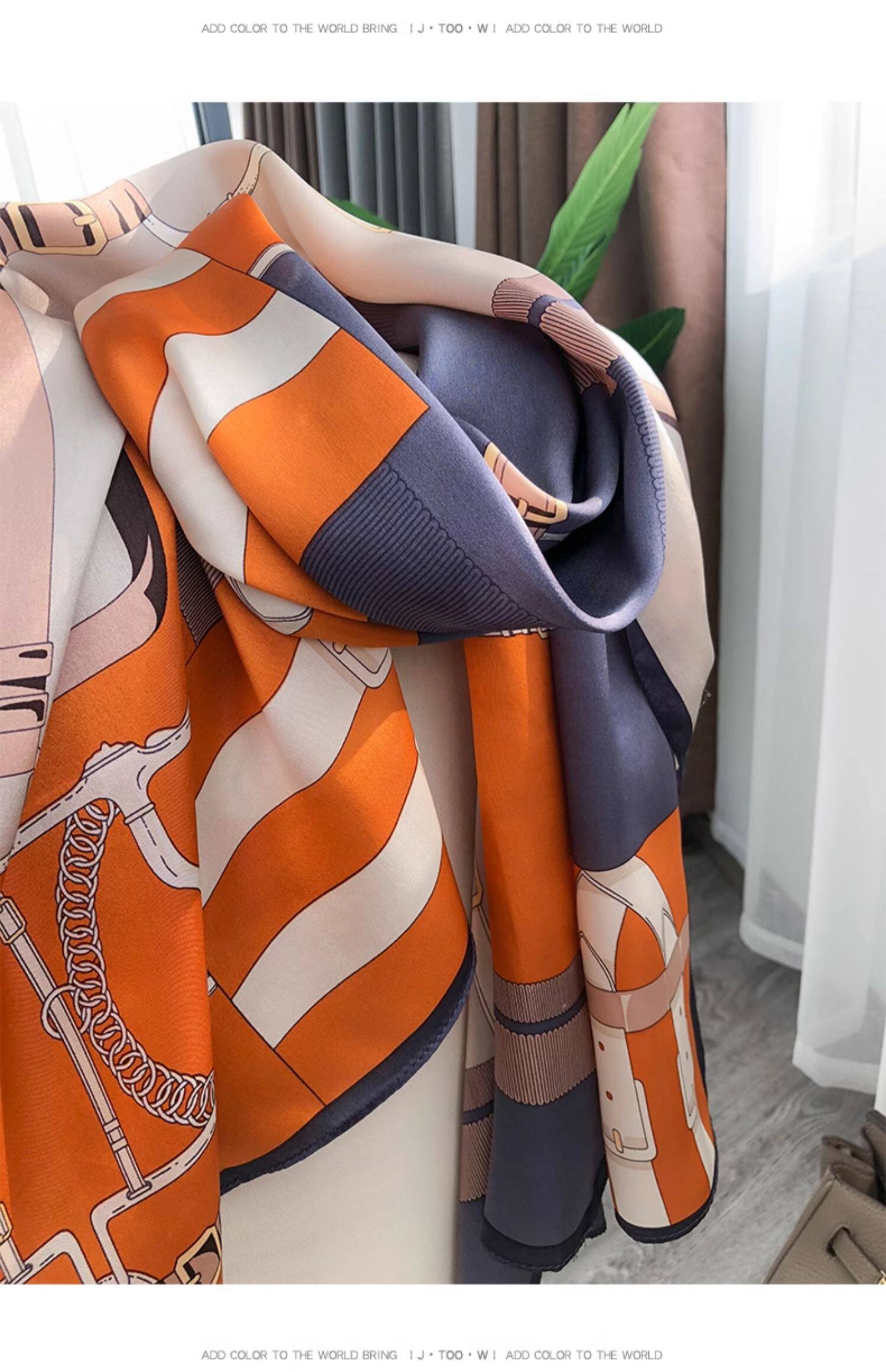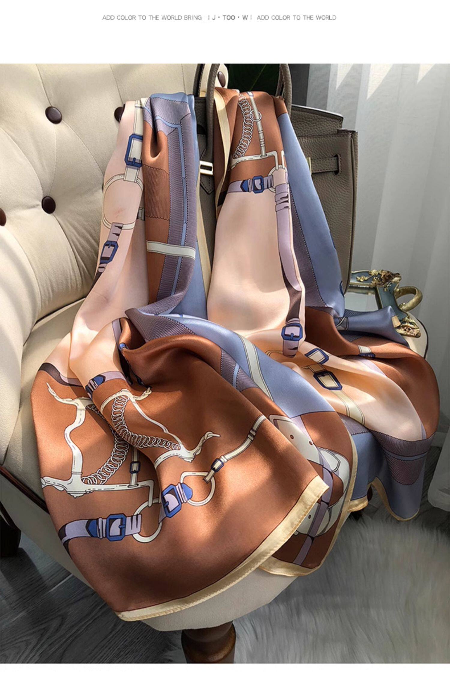 Hangzhou Silk Classy French Satin Silk Scarf Silk Women's Spring and Autumn Long Mulberry Silk Scarf Shawl Dual-Use