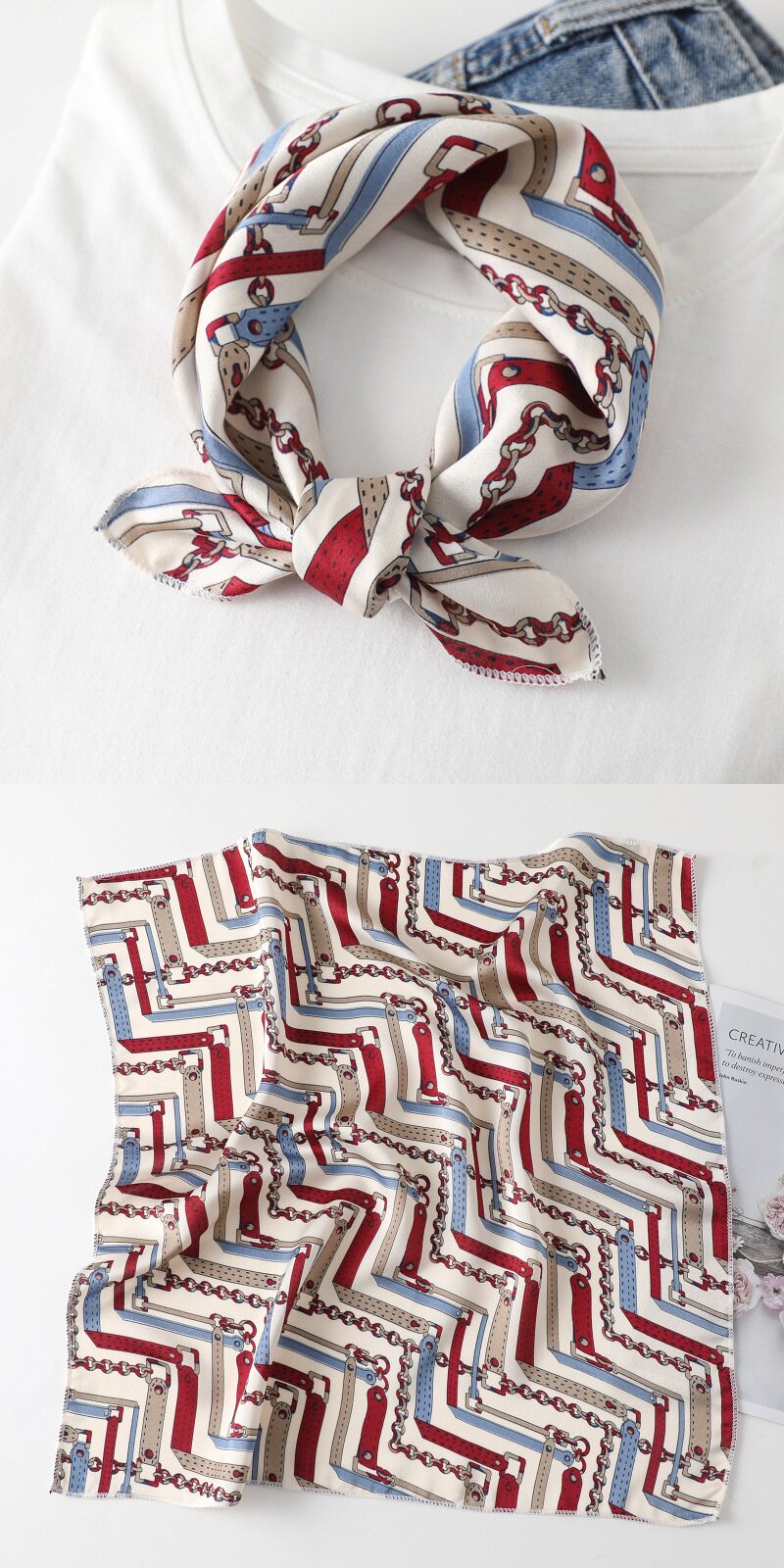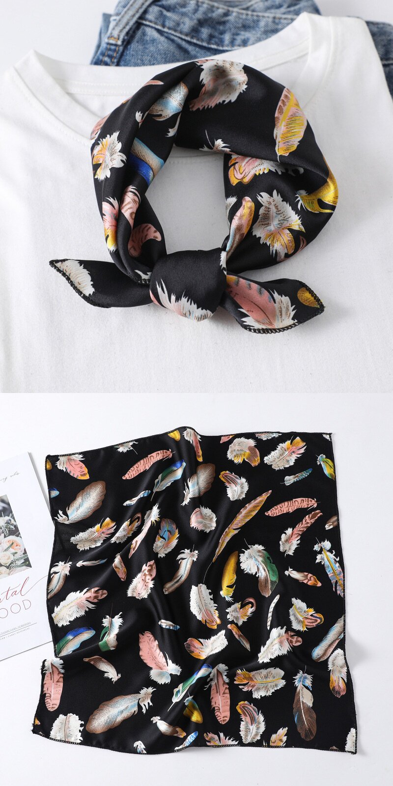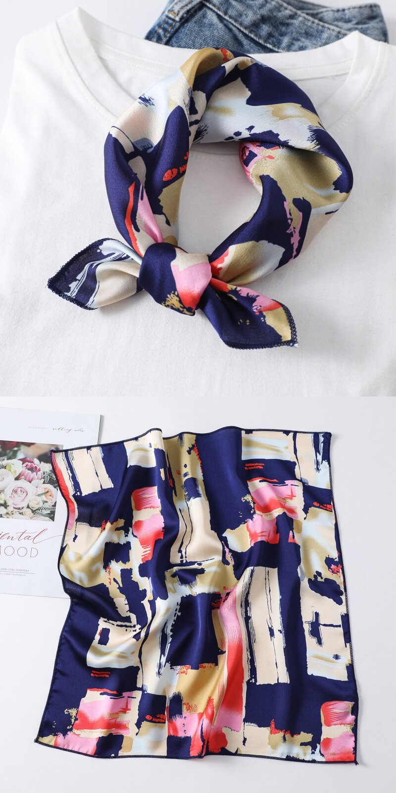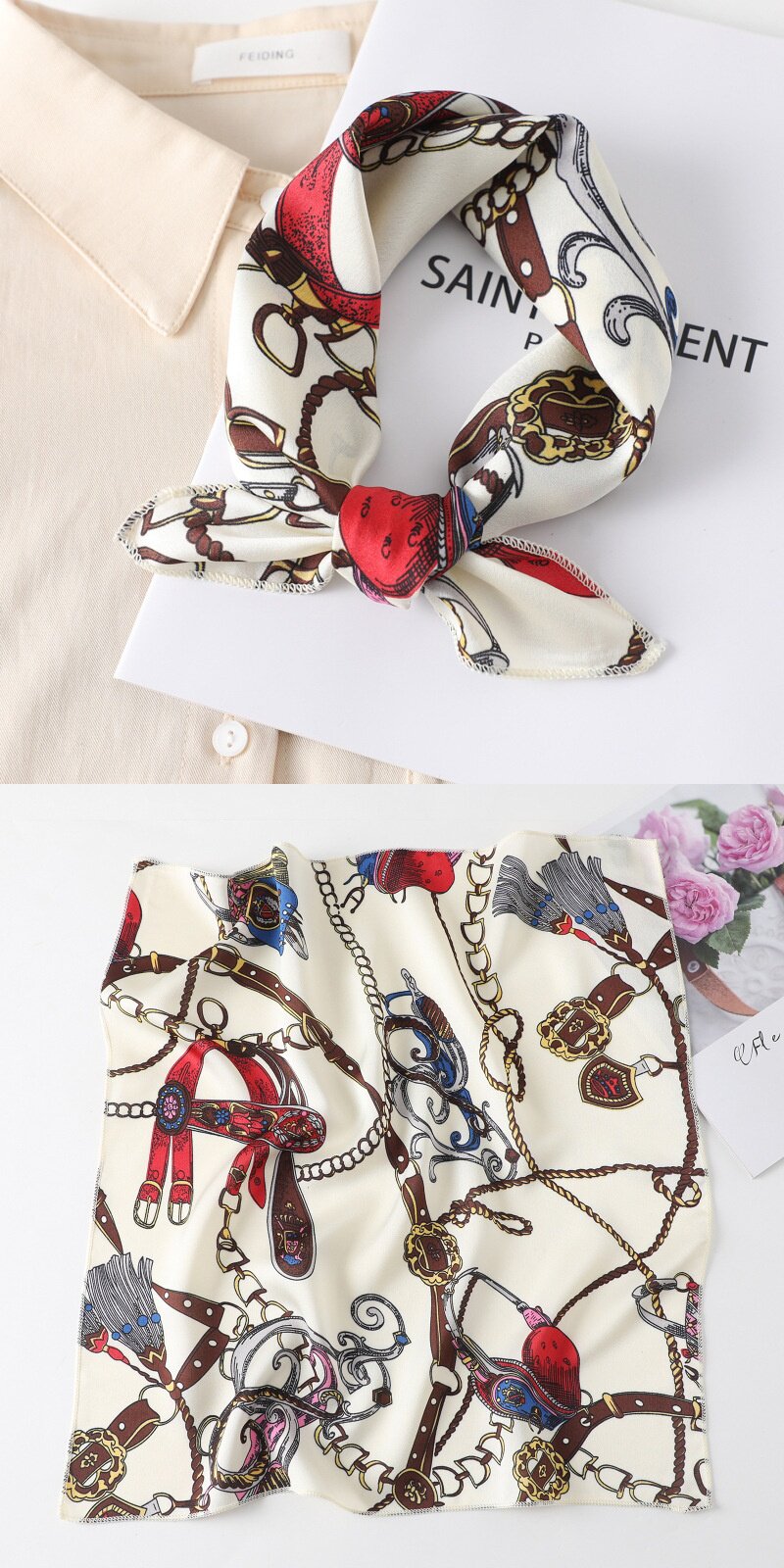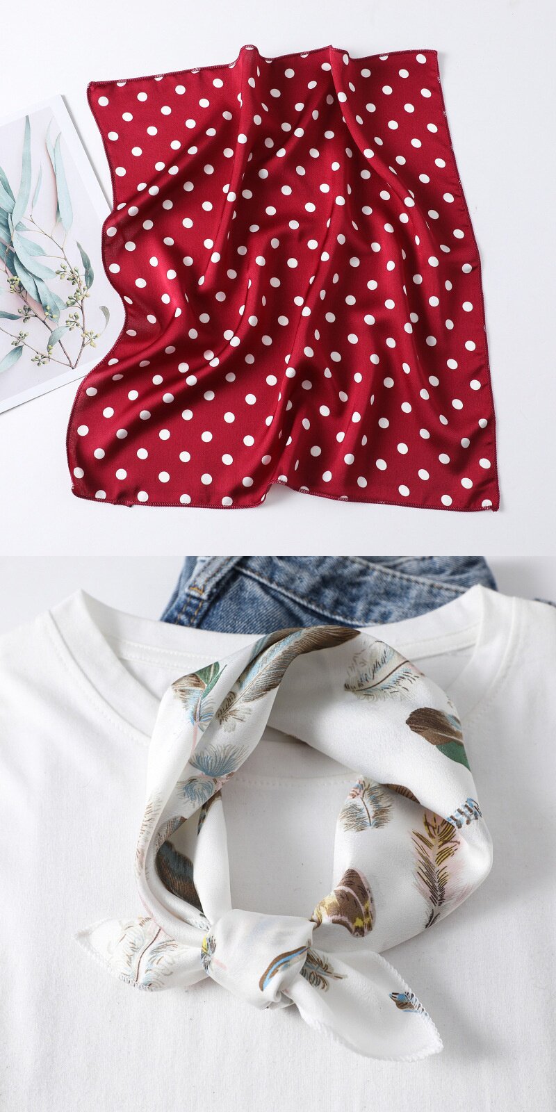 Satin imitation silk scarf for women, digital printed silk scarf, small square scarf, 50cm, polka dot stripes, various scarves, trendy decoration