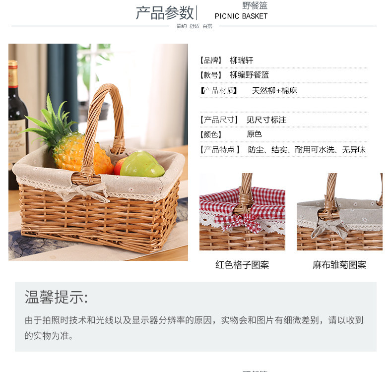 Liu Ruixuan wicker picnic basket hand basket shopping basket flower basket gift packaging basket picking basket outing basket