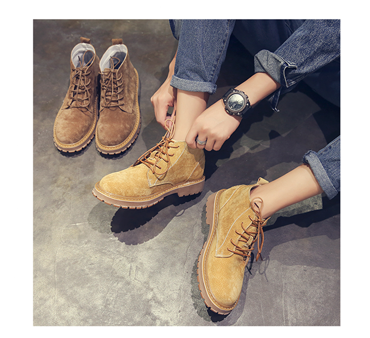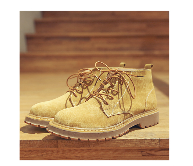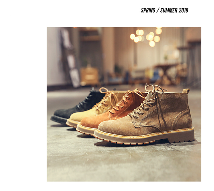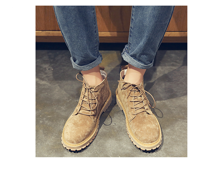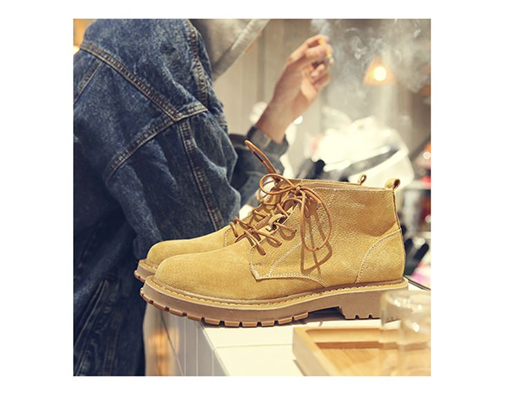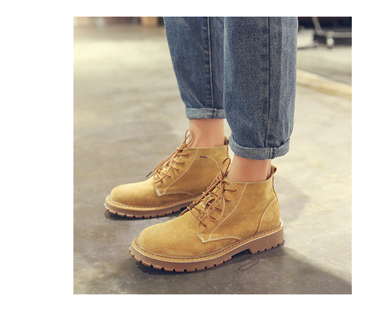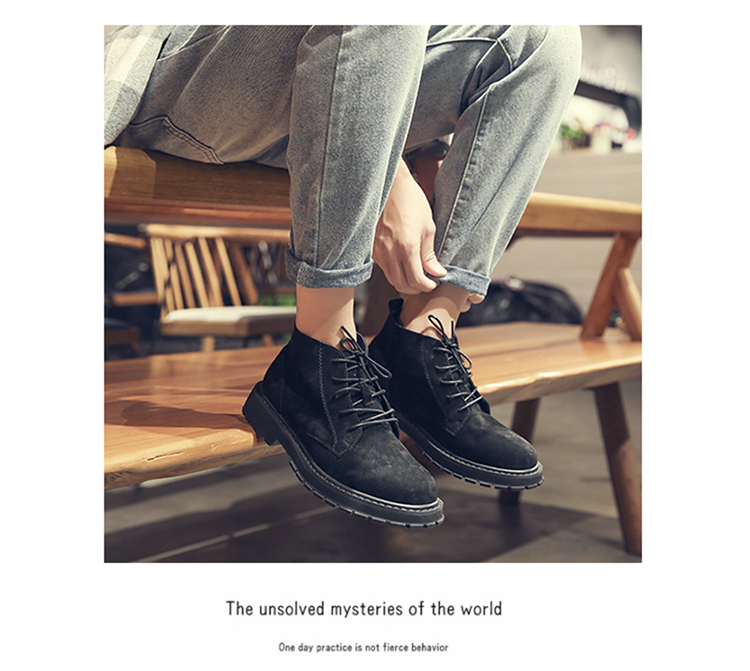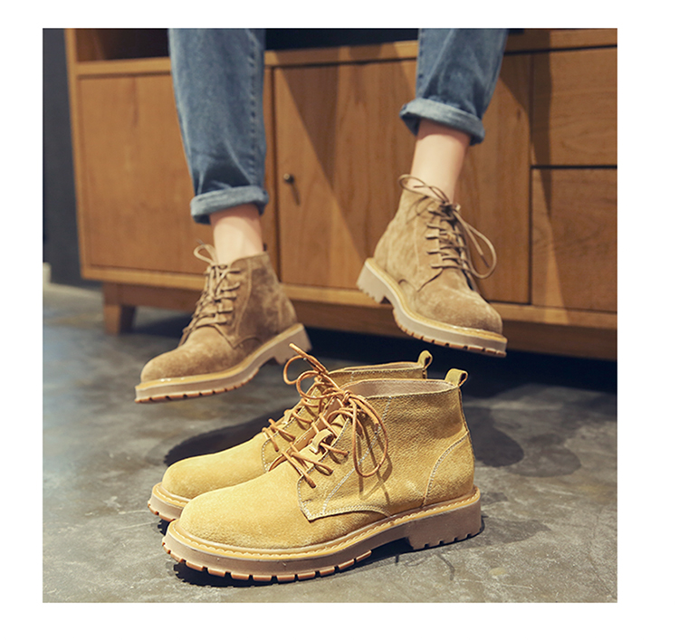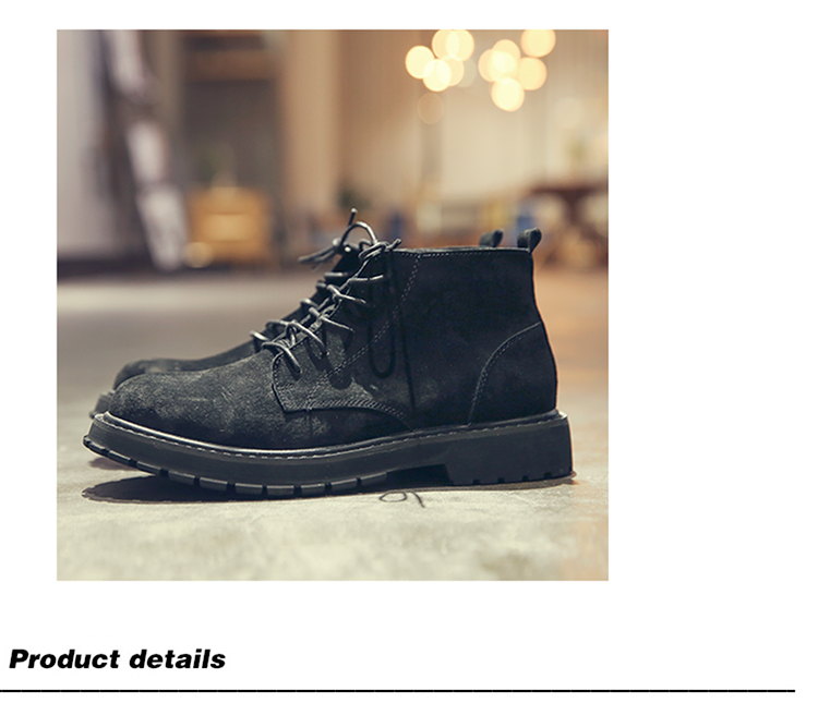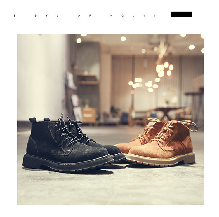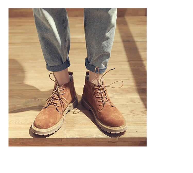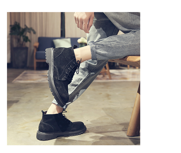 Martin boots men's winter velvet high-top shoes genuine leather trendy retro casual short boots mid-top British style work boots