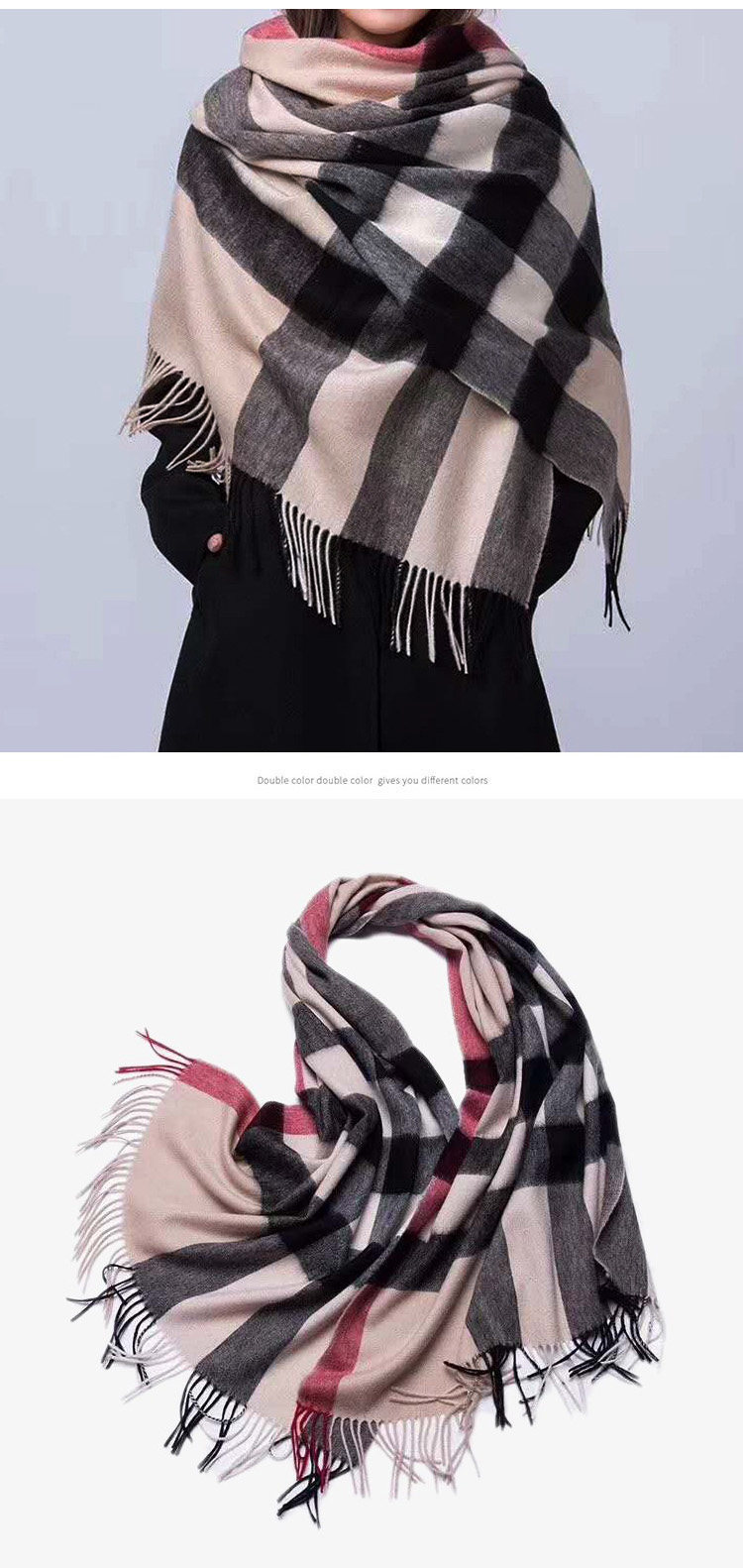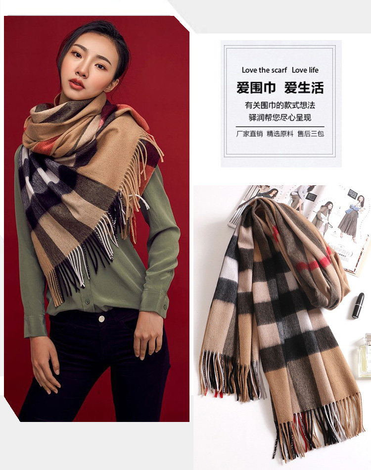 Ordos city high-end boutique 100% pure cashmere water ripple scarf women's winter thickened shawl warm neck scarf