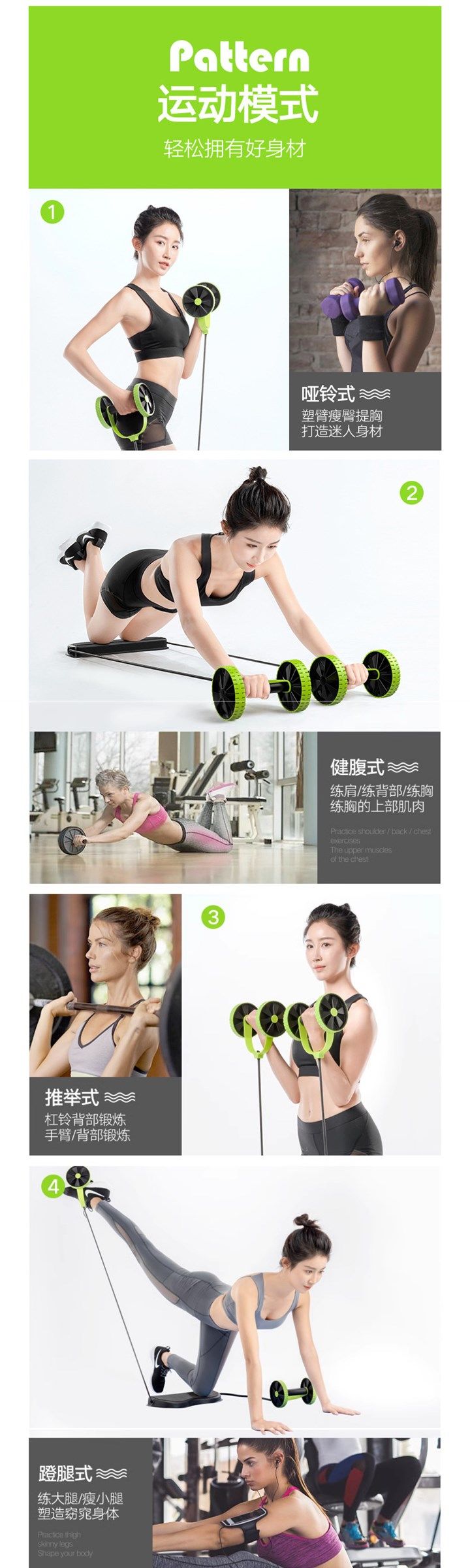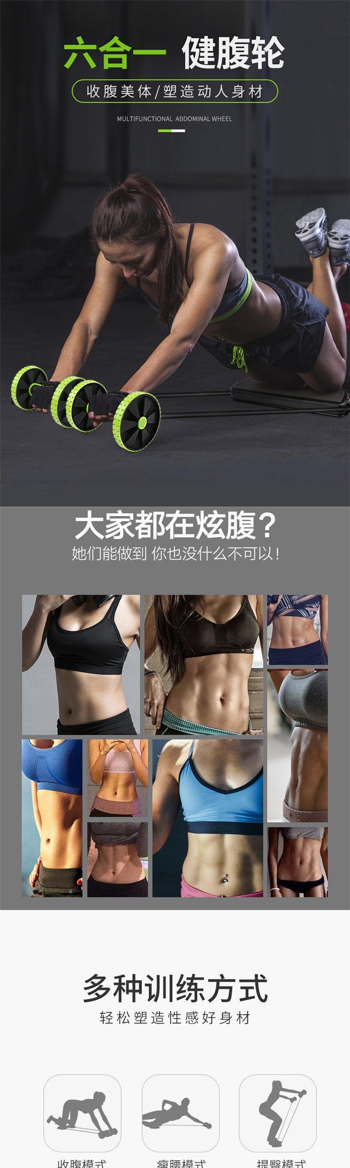 Six-in-one double-wheel tension rope automatic rebound abdominal wheel home fitness equipment abdominal muscle training multi-functional silent