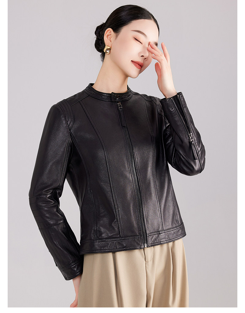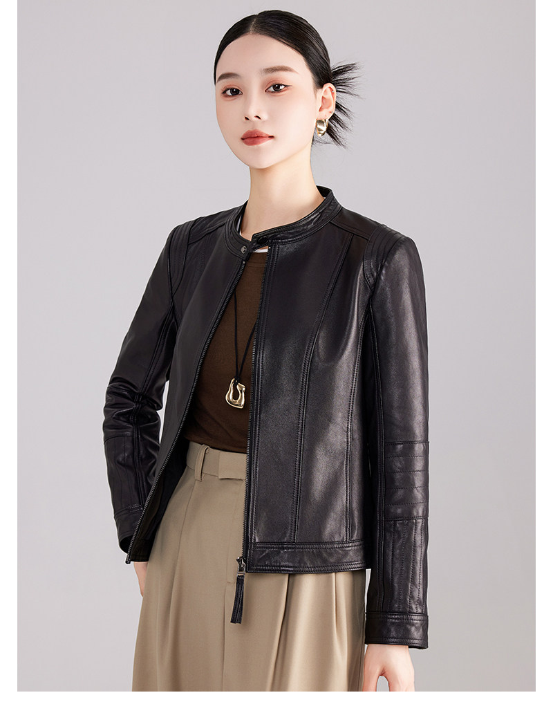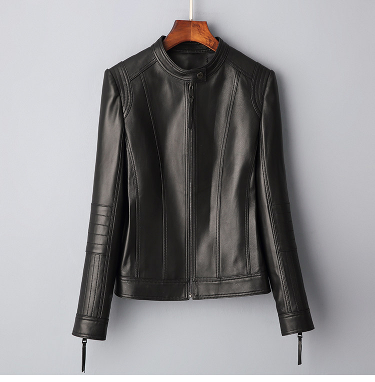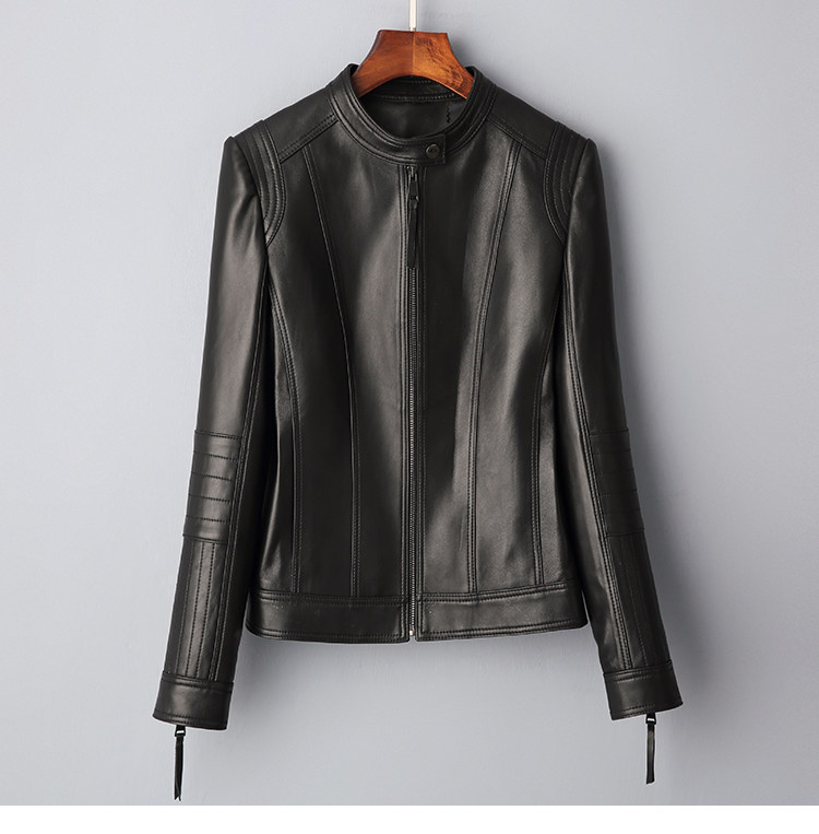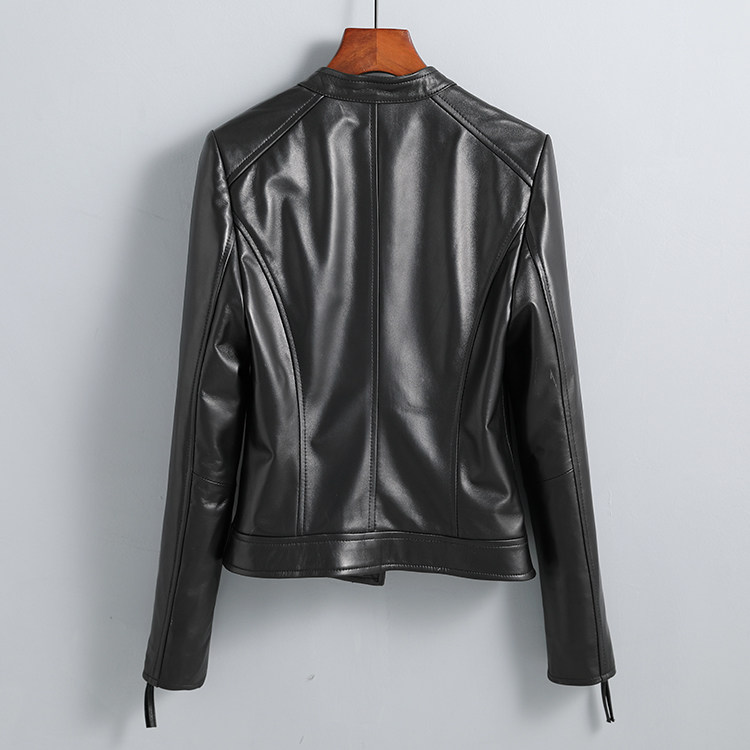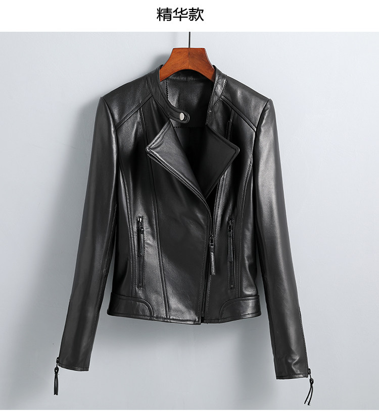 Haining genuine leather jacket women's short high-end first-layer sheepskin slim versatile jacket coat stand collar spring and autumn new style