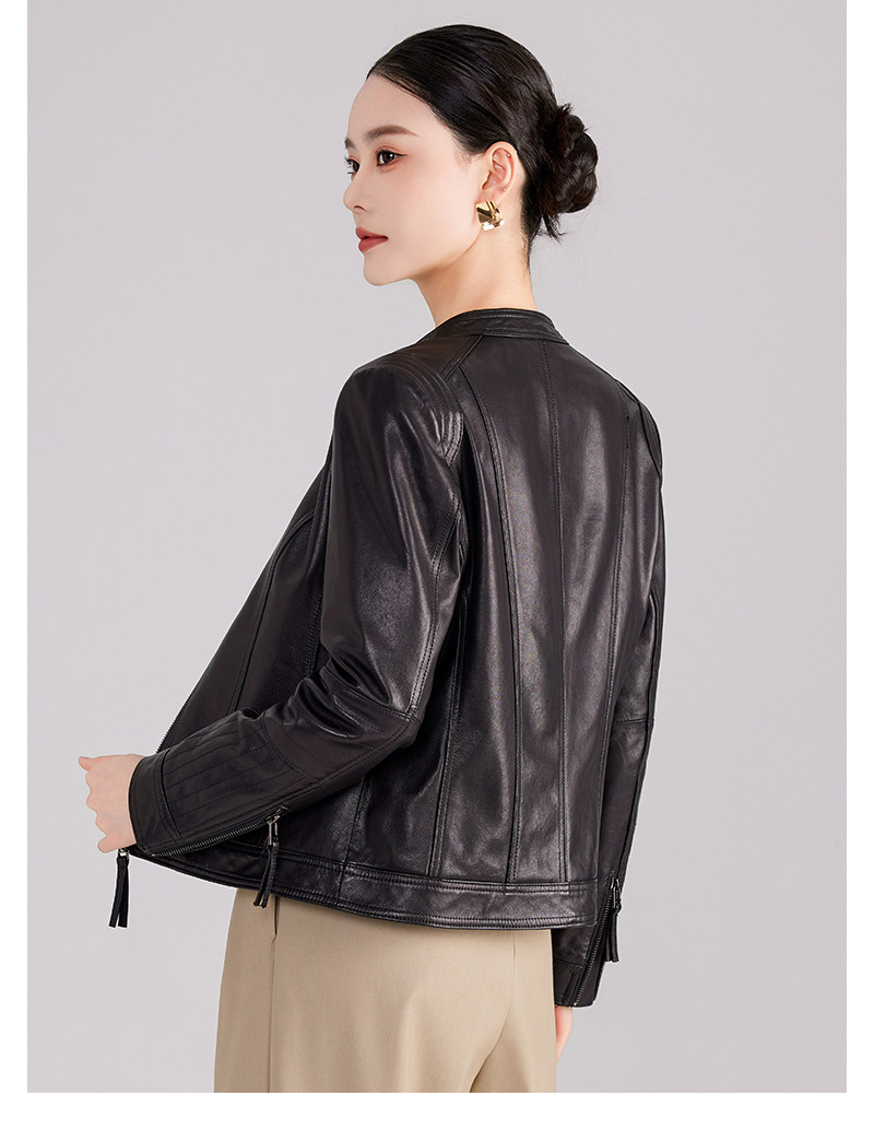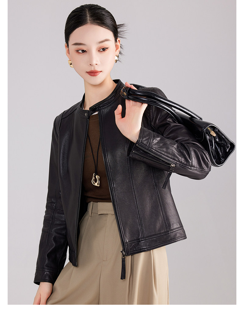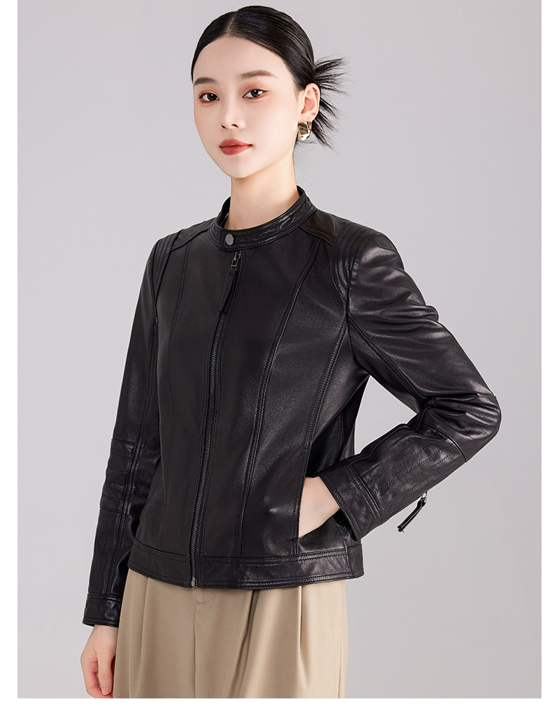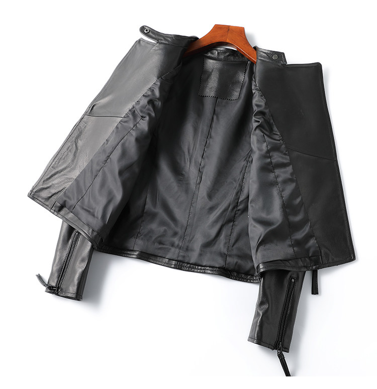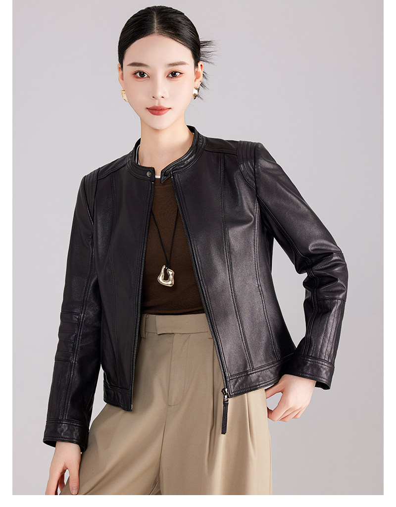 Haining genuine leather jacket women's short high-end first-layer sheepskin slim versatile jacket coat stand collar spring and autumn new style