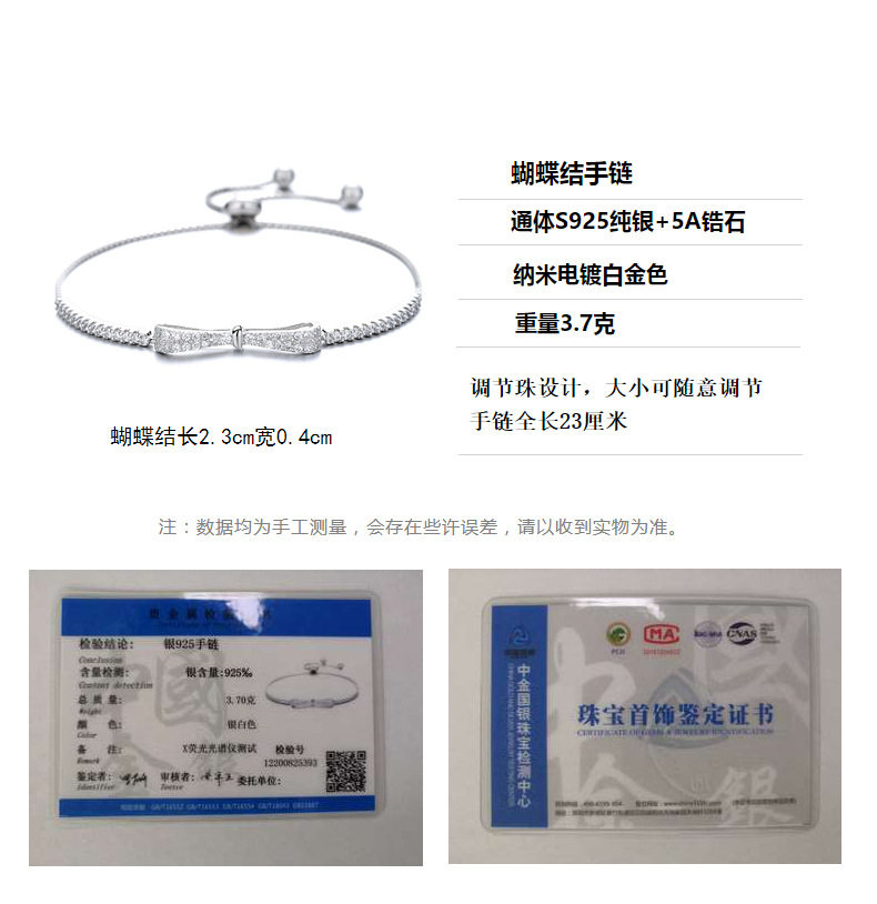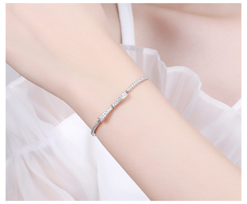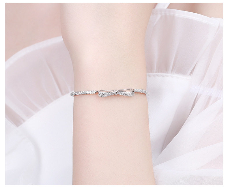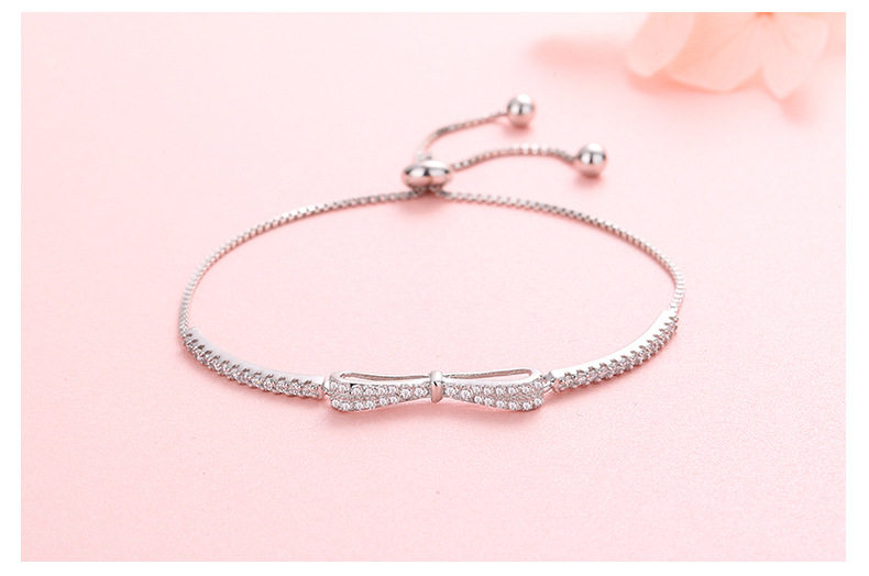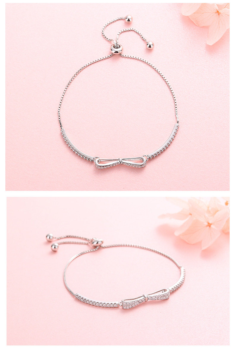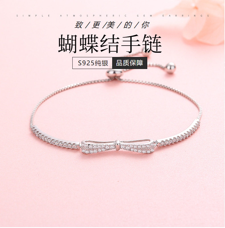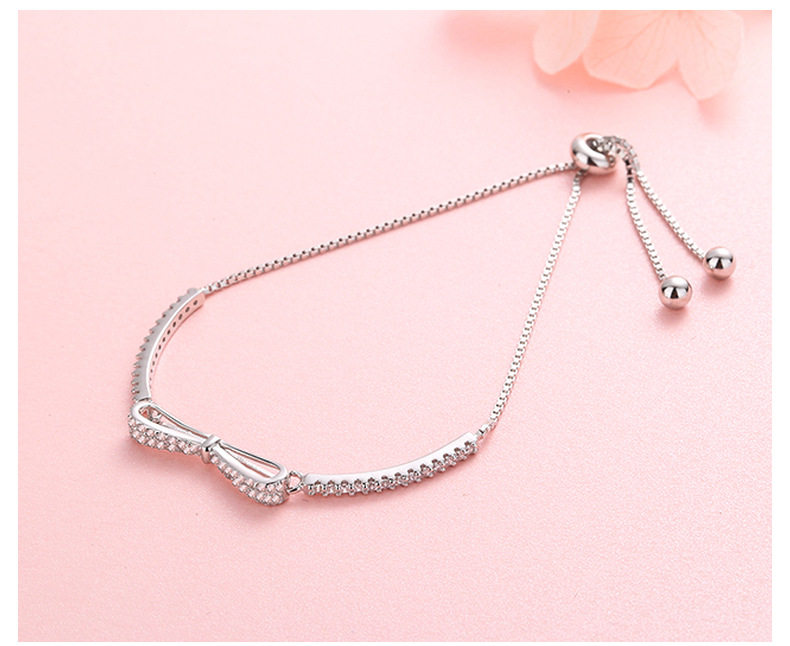 S925 sterling silver platinum-plated diamond bow adjustable bracelet ins niche design bracelet student bracelet