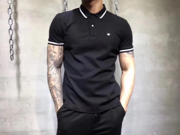 European and American trendy brand summer clothes new fashion little bee slim business short-sleeved T-shirt lapel POLO shirt for men
