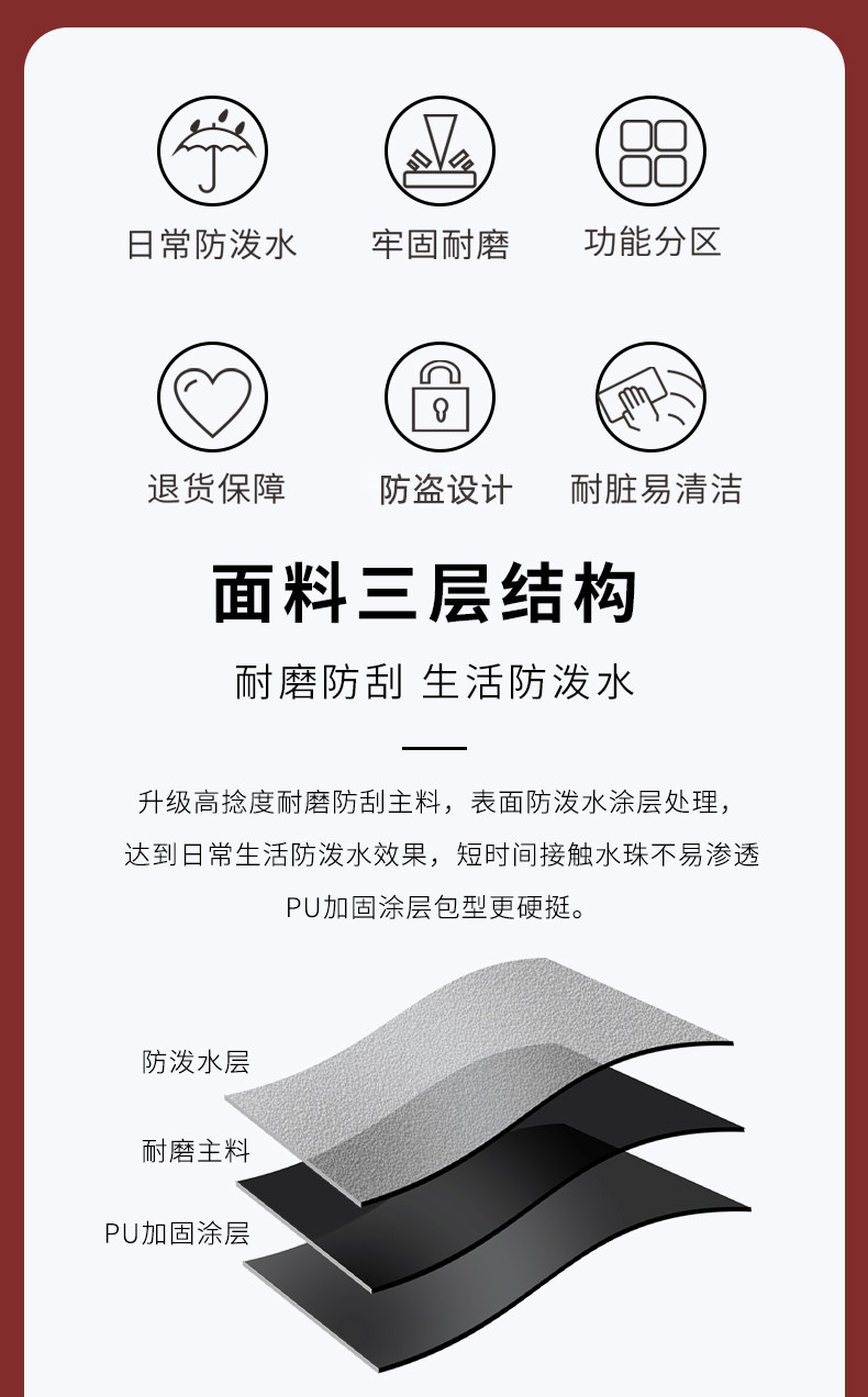 Innere Struktur Netztasche,verstecktes Gitter,laminierte Reißverschlusstasche,Computertasche,Kameratasche,ID-Steckplatz