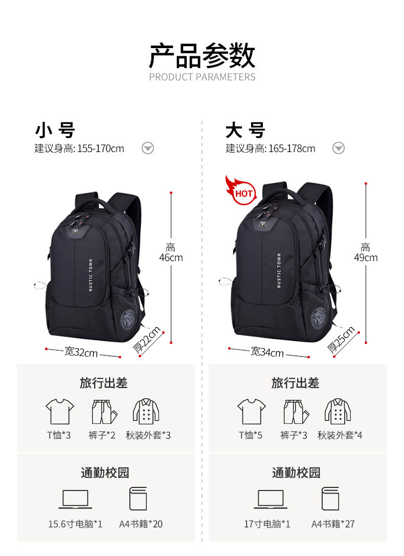 Rucksack für Herren, großes Fassungsvermögen, Geschäftsreisen, Bergsteigen, Computer, weiterführende Schule, Mittelstufe, Studentenrucksack, College-Studentenrucksack