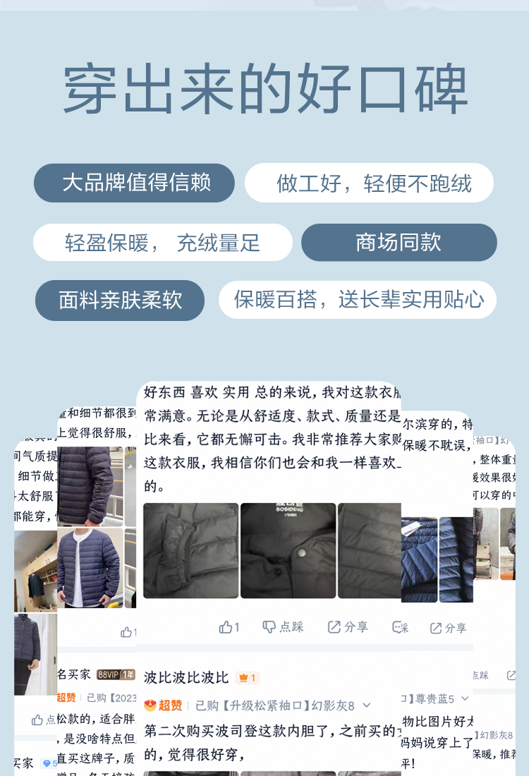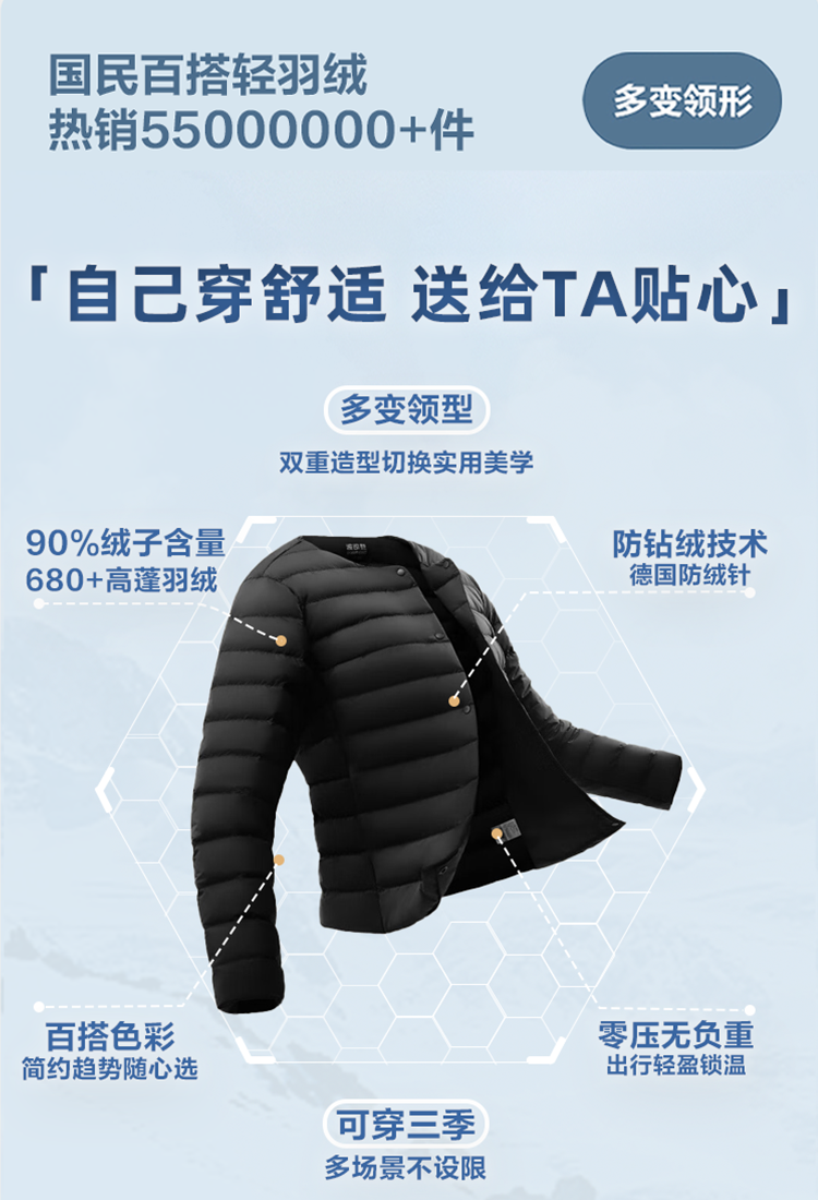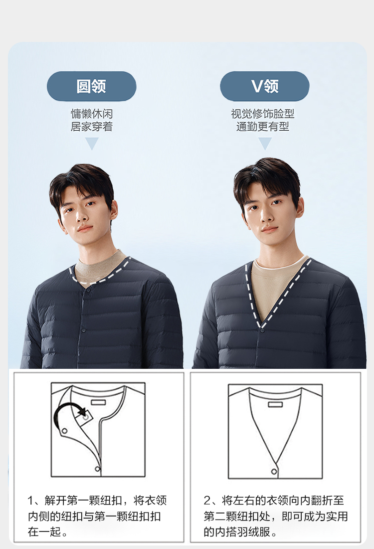波司登羽绒服内胆男士内搭秋冬轻薄保暖无领内穿冲锋衣薄羽绒内恤