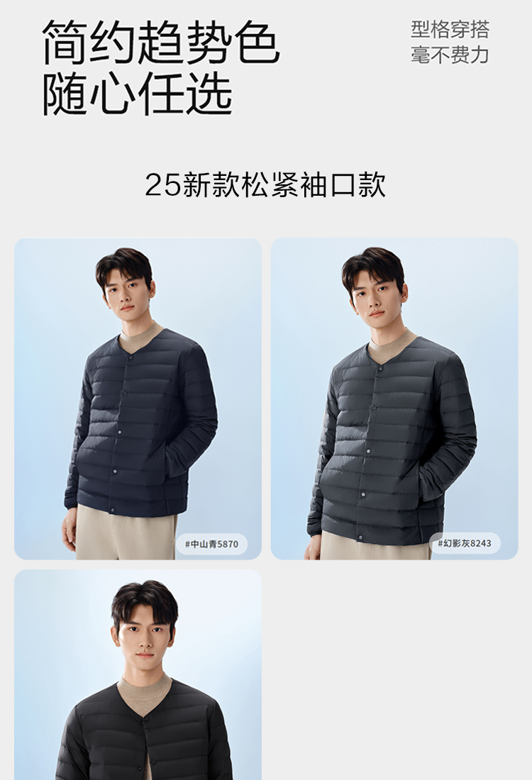 颜色 【畅销松紧袖口】中山青,【畅销松紧袖口】黑色8056,【畅销松紧袖口】幻影灰8243,【25年新款松紧袖口】黑色8056,【25年新款松紧袖口】中山青5870,【25年新款松紧袖口】幻影灰8243,【2025年立领款】中山青5870,【2025年立领款】黑色8056,【2025年立领款】幻影灰8243,【2025年立领款】字母灰9BE6,【2025年立领款】墨山渐变9CN4,【经典直筒袖口】幻影灰8243,【经典松紧袖口】尊贵蓝5456,【经典直筒袖口】黑色8056,【经典松紧袖口】潜水绿4281