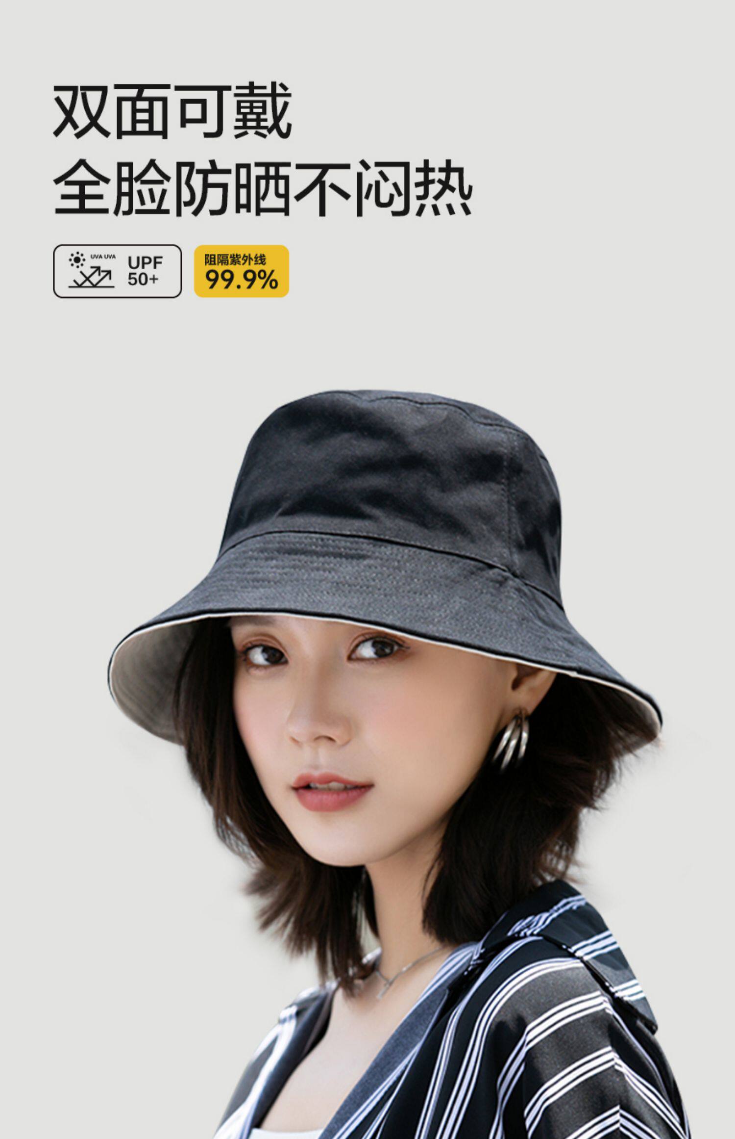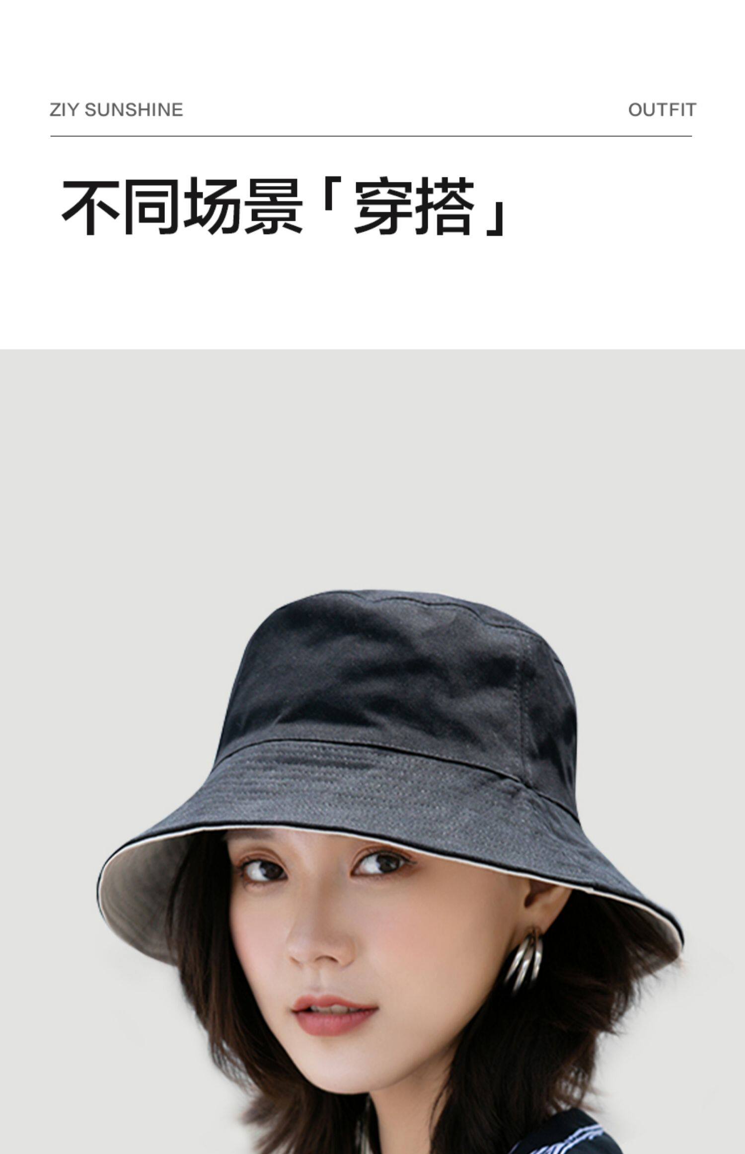 Ziy black fisherman hat women's summer double-sided internet celebrity same style versatile sun protection sun protection UV sun hat