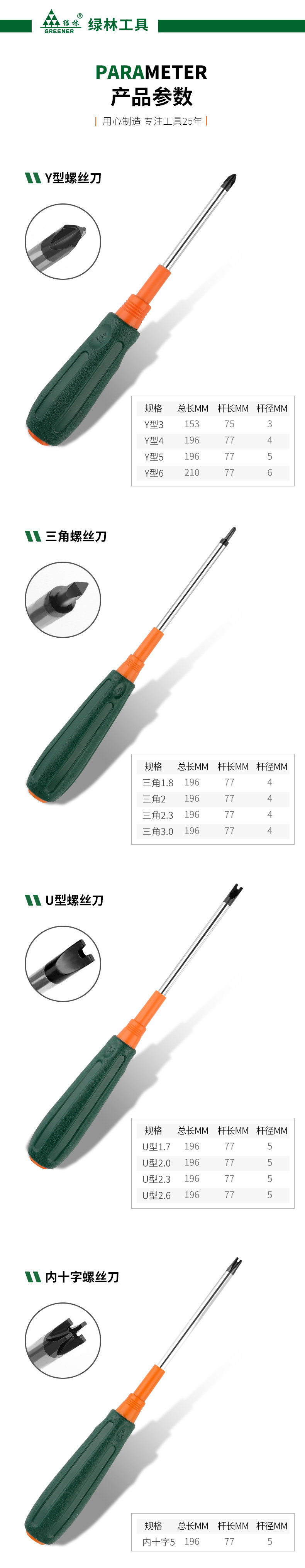 绿林三角螺丝刀套装U型Y型起子公牛插座三棱改锥内十字异形螺丝刀