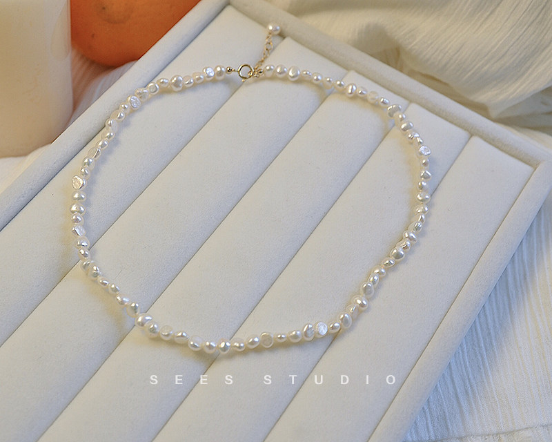 Natural Pearl/Baroque Irregular Necklace Women's Clavicle Chain Small Pearl Fashion Necklace 14k Gold-Plated
