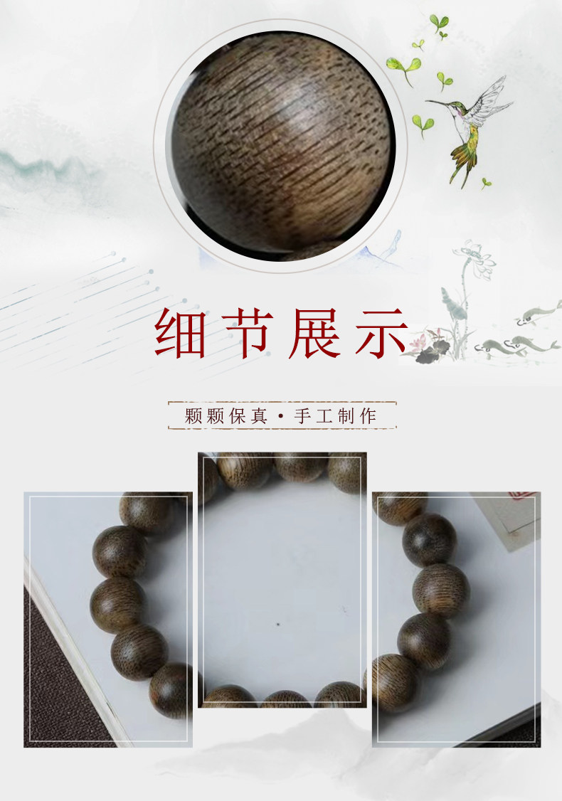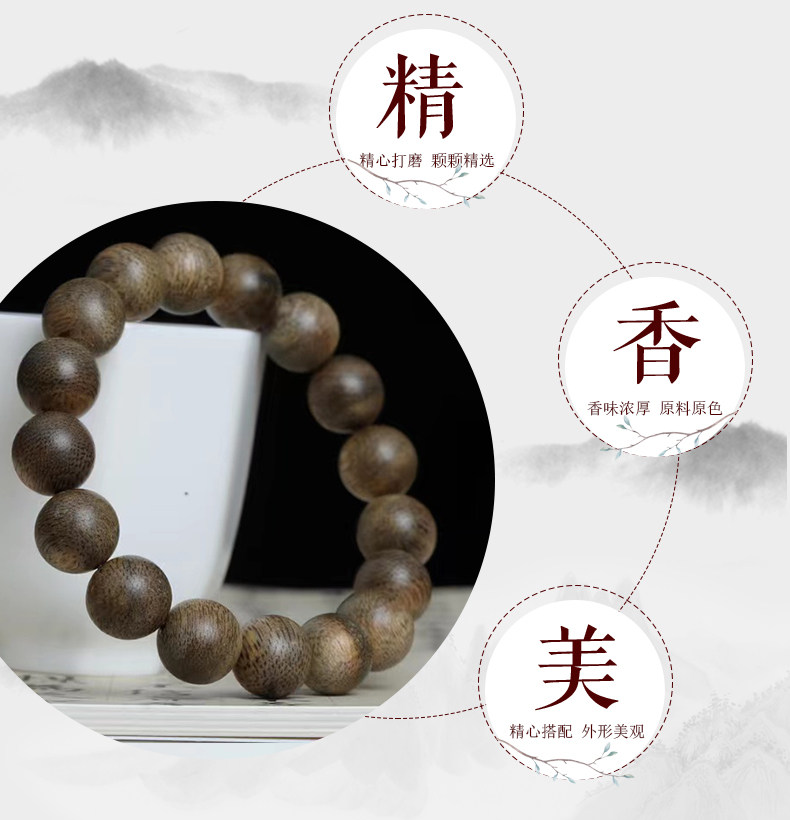 Genuine brunei agarwood bracelet for men, nine-point agarwood old material sandalwood bracelet, high-end buddha beads, natural fidelity gift for couples