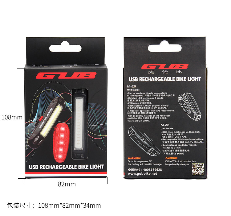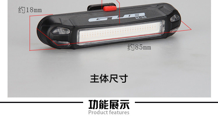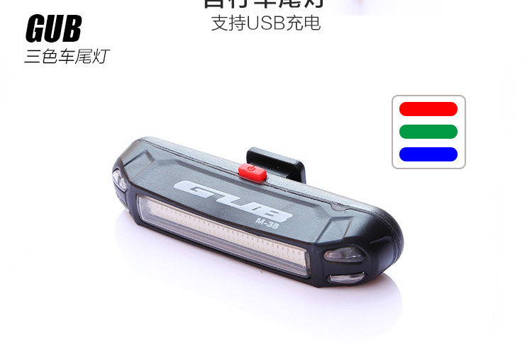 GUB M38C 三色车尾灯 自行车尾灯USB充电 夜骑灯山地车灯配件
