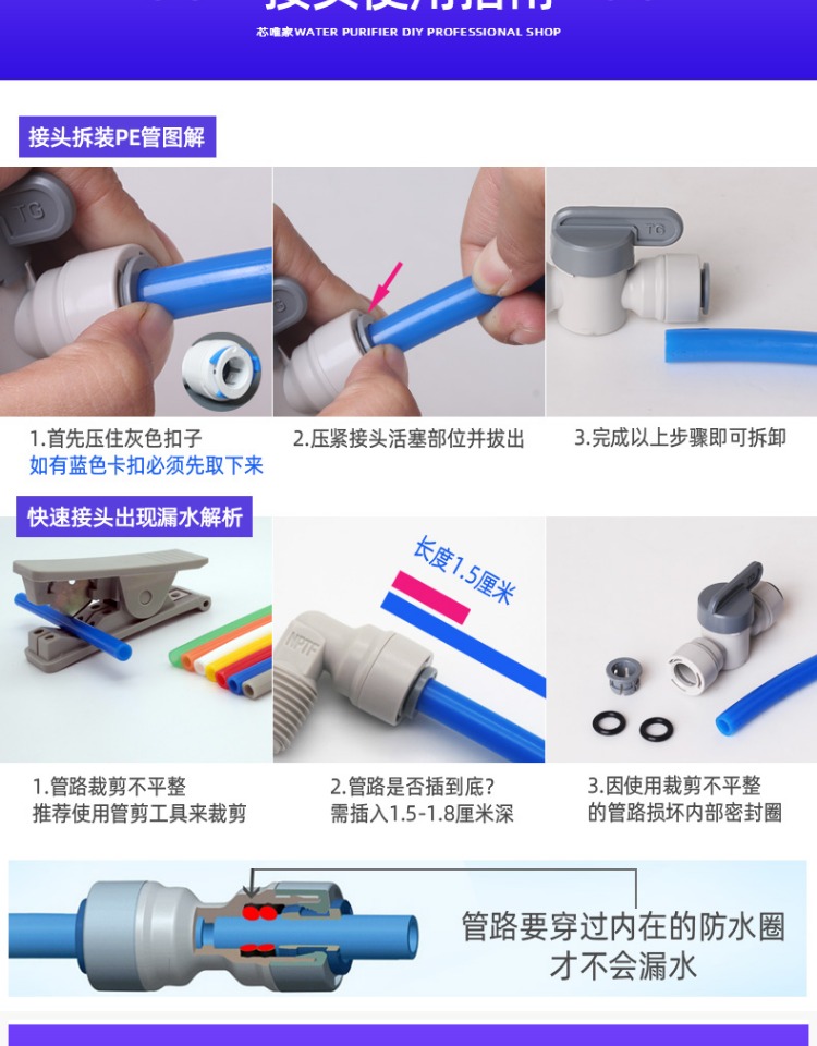 Water Purifier Household Water Pipe Adapter Fittings 1/2 Inch to 1/4 Inch 3/8 Inch Elbow Pure Water Machine Interface Complete Set Universal