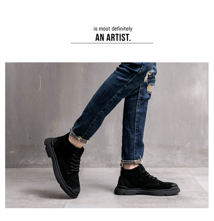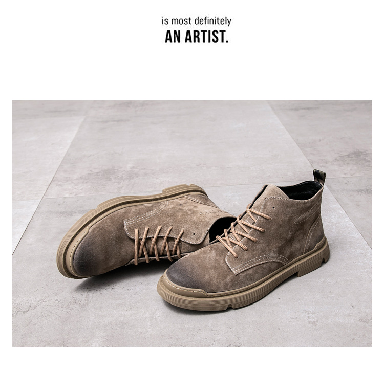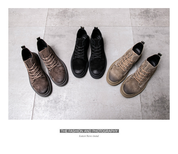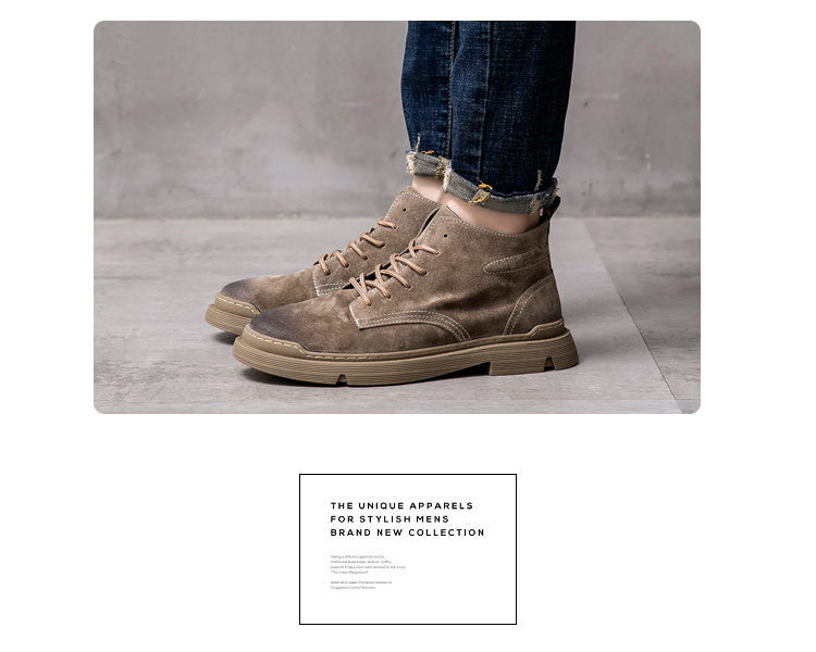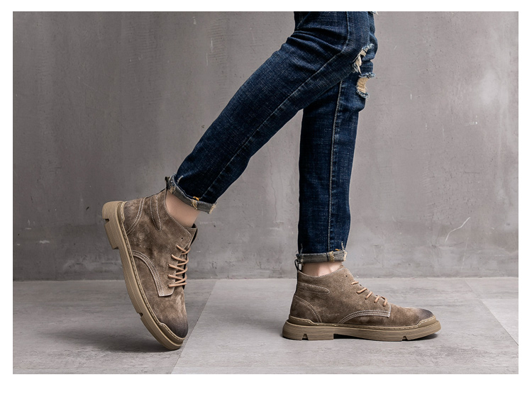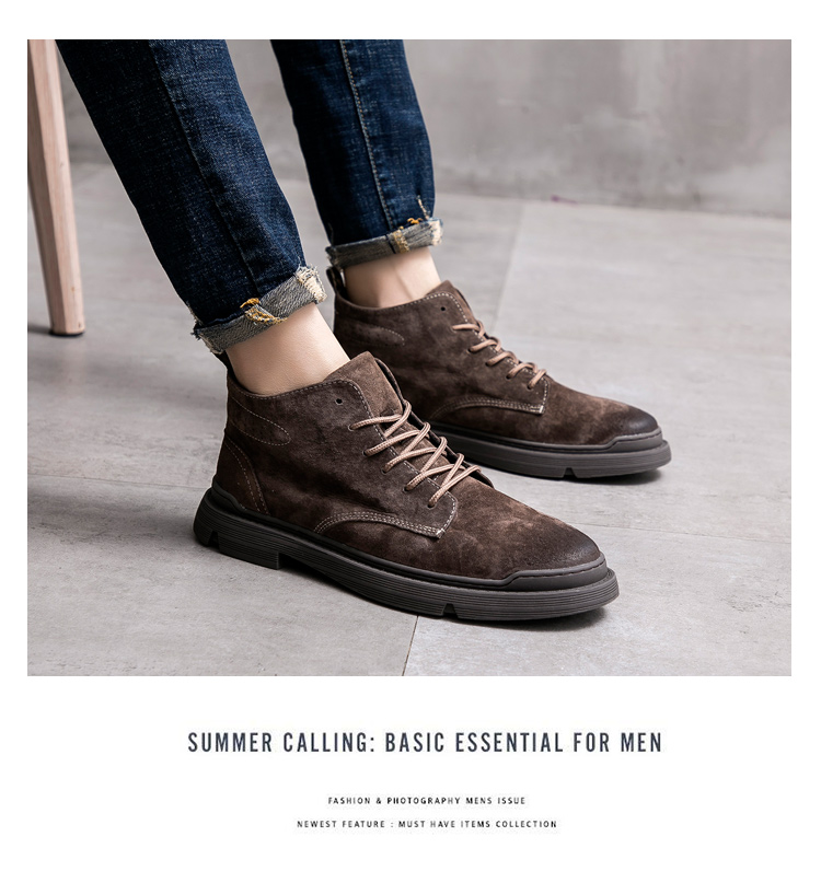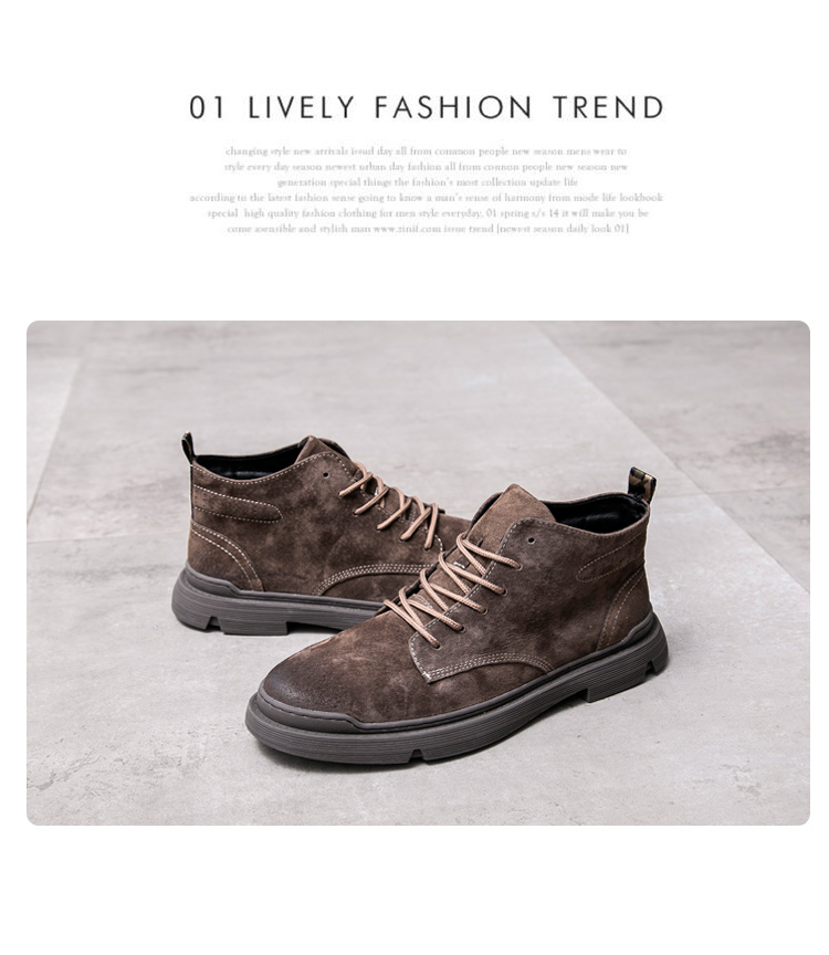 Martin boots men's genuine leather British high-top shoes Korean style trendy mid-top casual boots retro versatile workwear desert boots