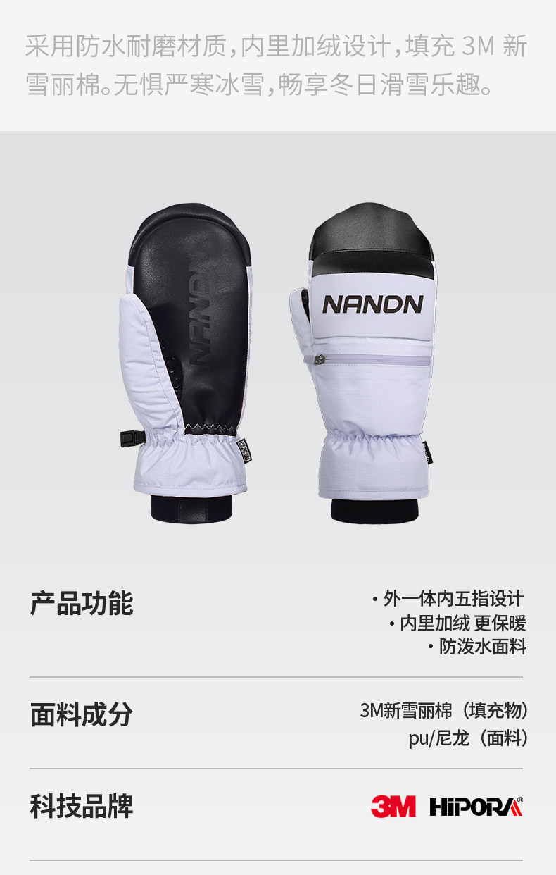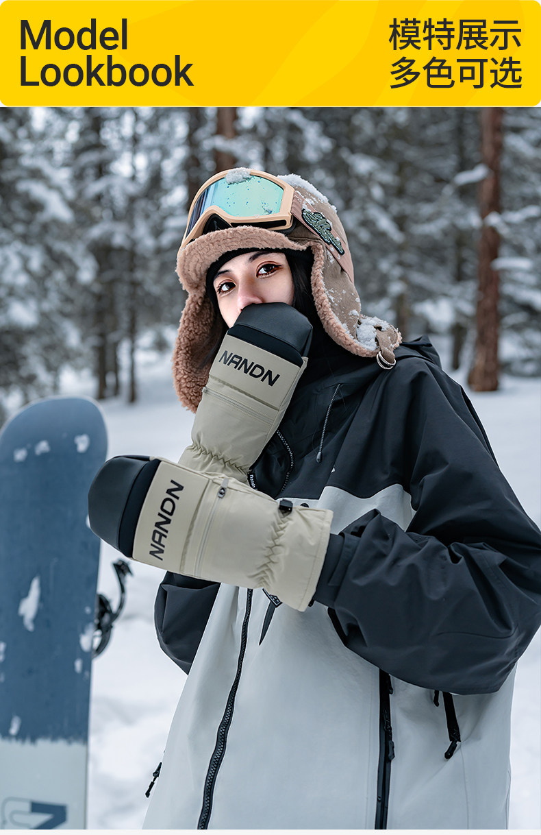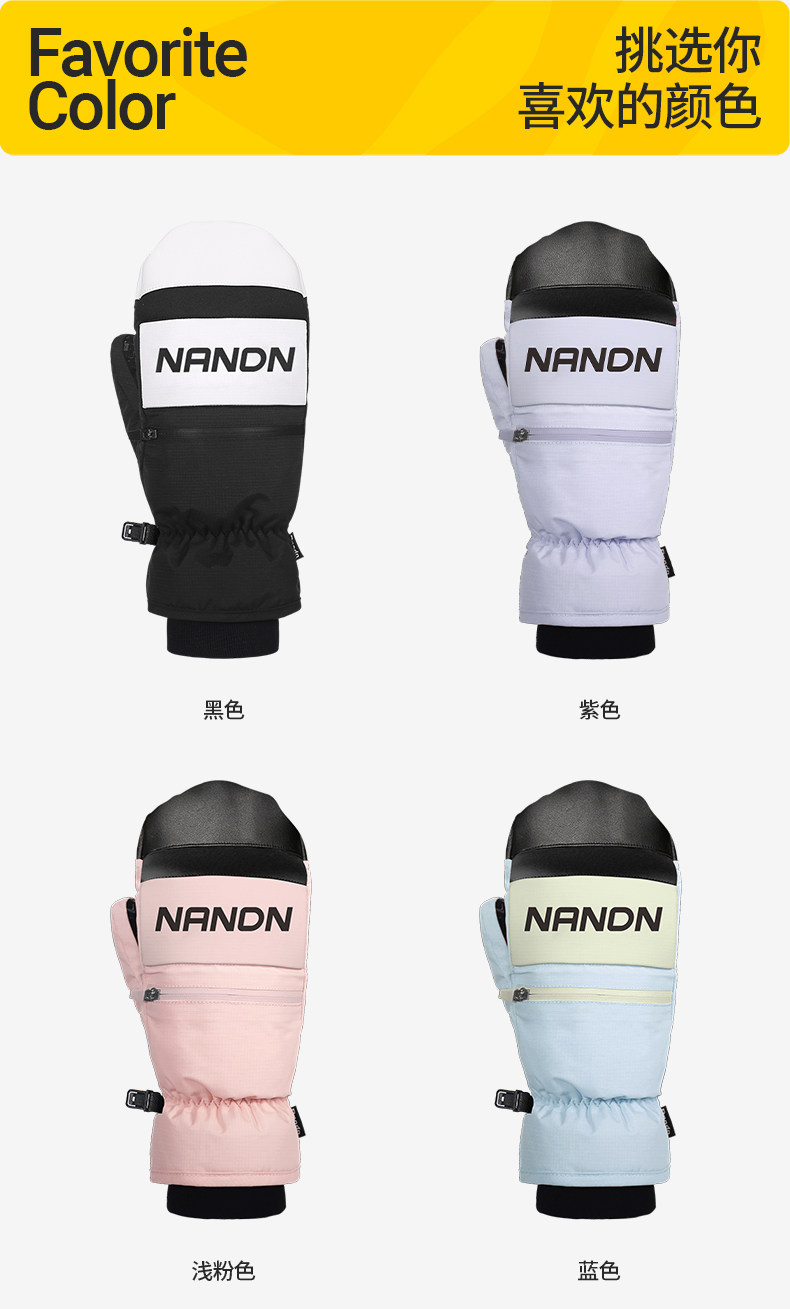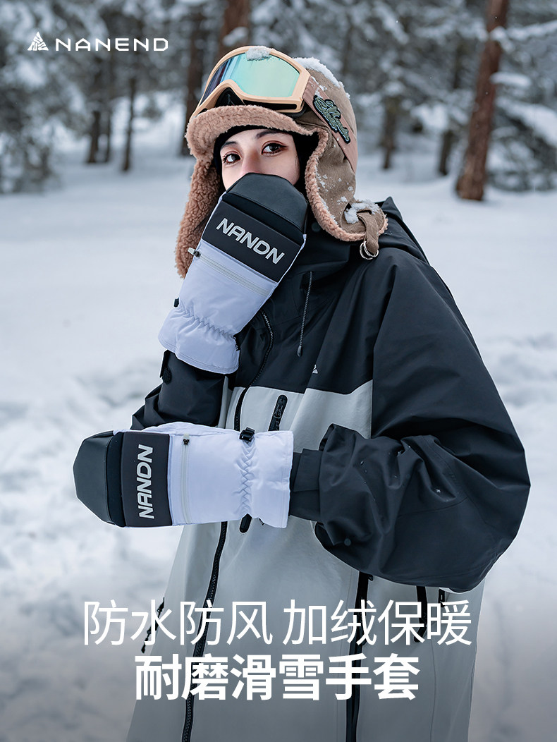 NANDN single and double board ski gloves, wear-resistant, waterproof and warm cycling gloves, men's and women's models NS5009