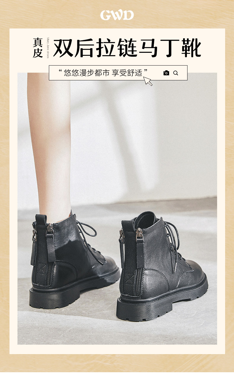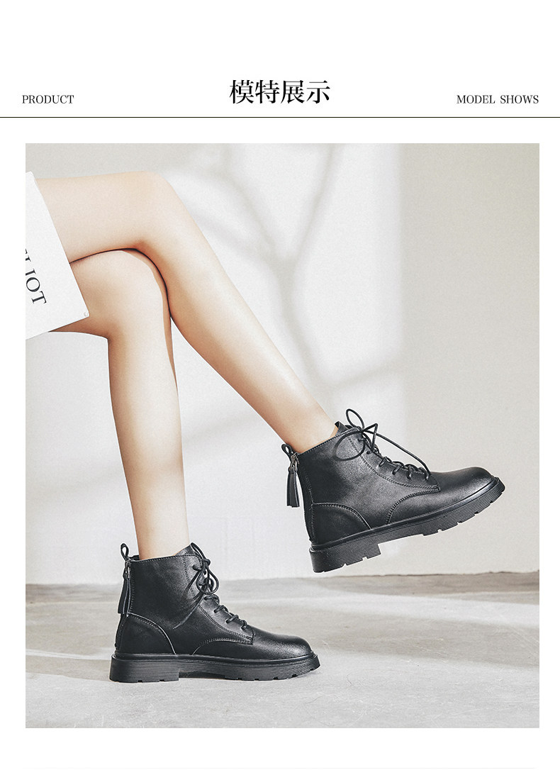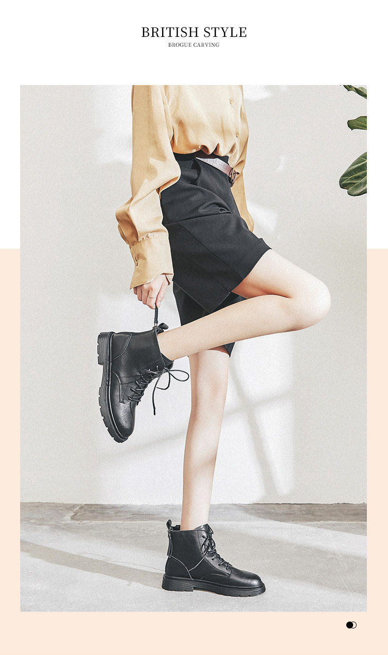 Low-cut Martin boots for women 2025 autumn genuine leather foot-showing small boots winter plus velvet British style short boots for small people