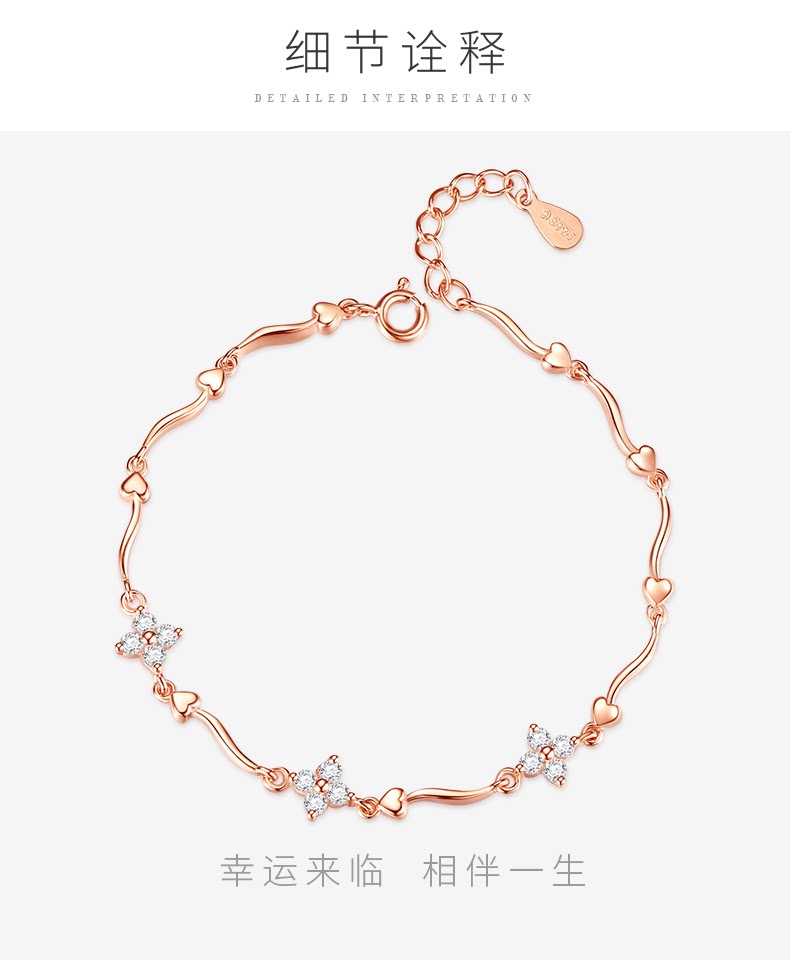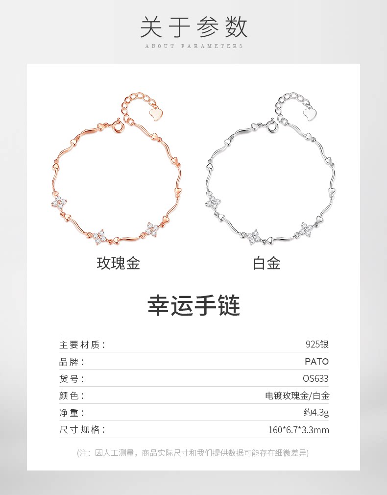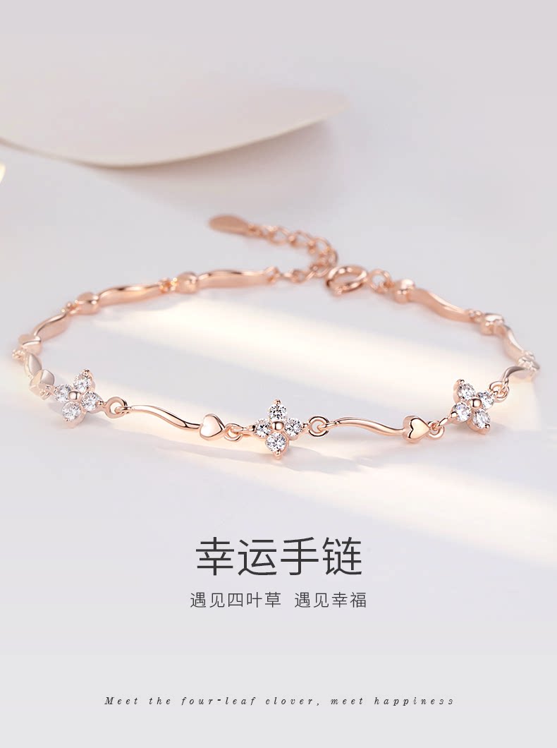 PATO sterling silver four-leaf clover bracelet for girls, light luxury bracelet for couples, Chinese Valentine's Day gift for girlfriend
