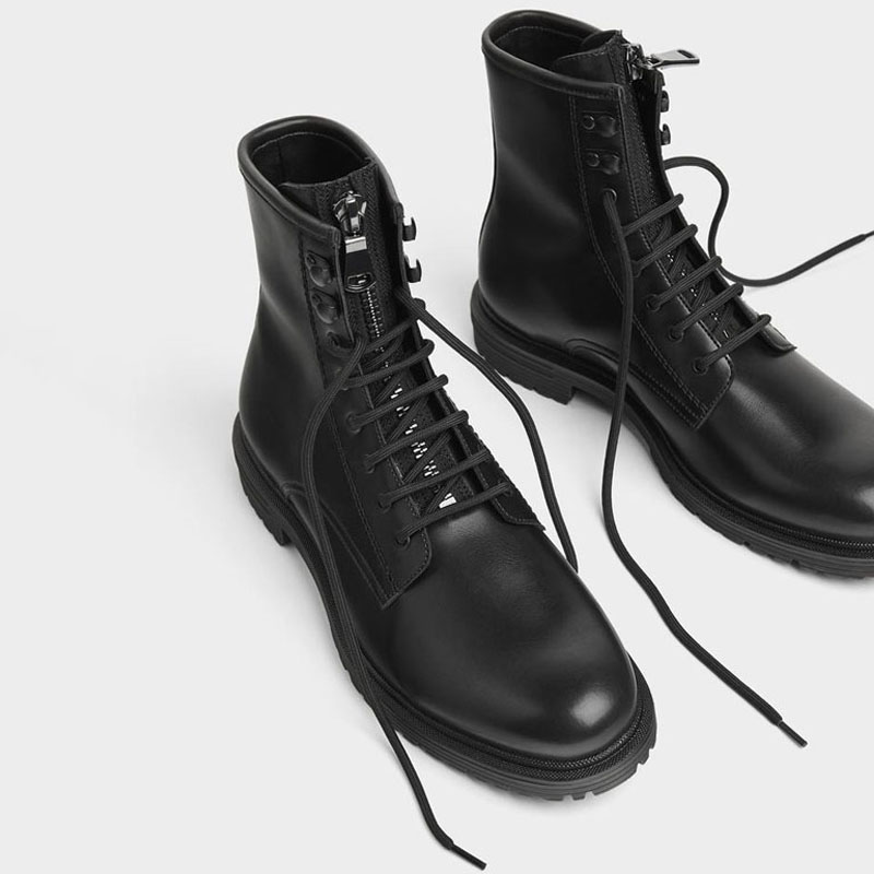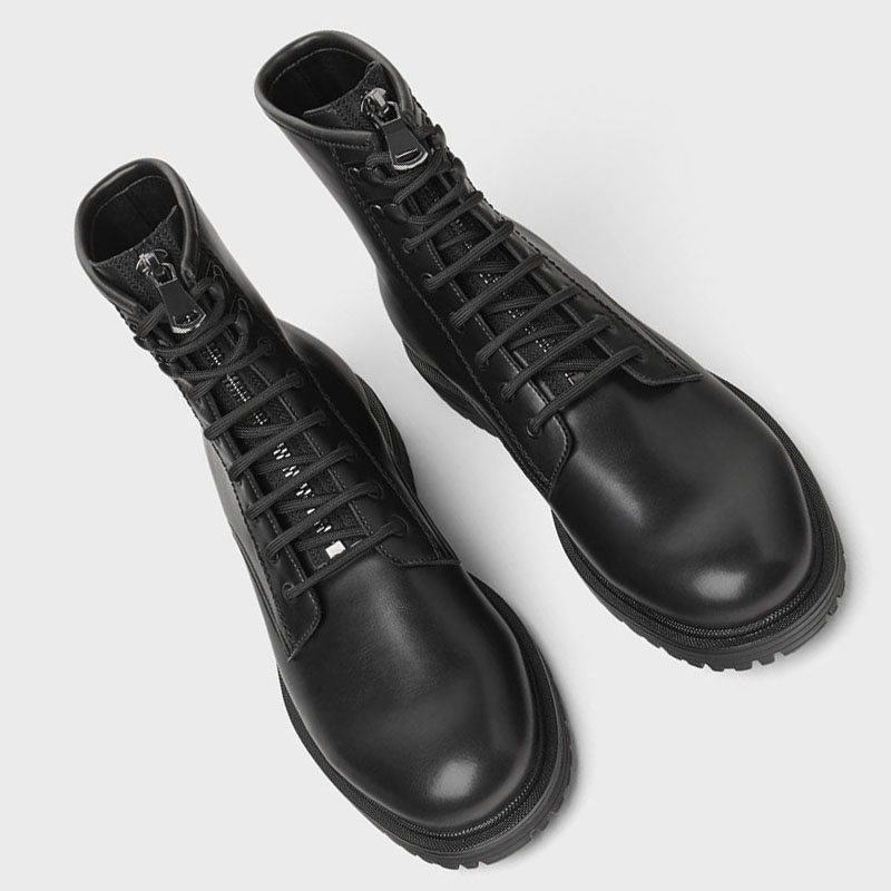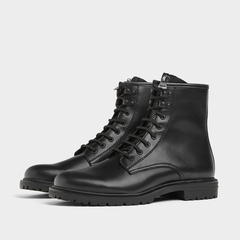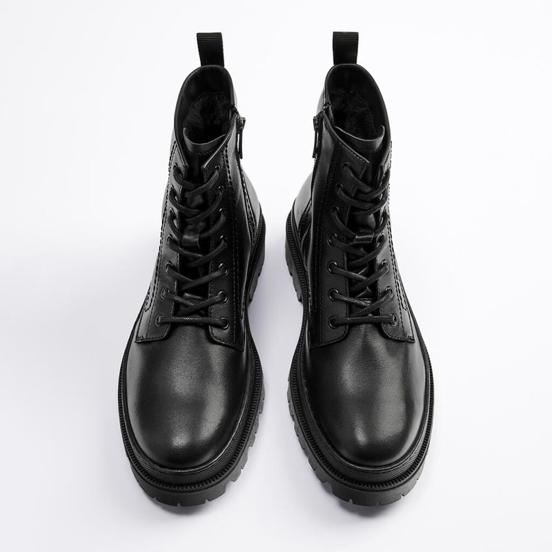 WALK ZARA men's shoes black lace-up work boots Martin boots short boots genuine leather high-top motorcycle boots leather boots
