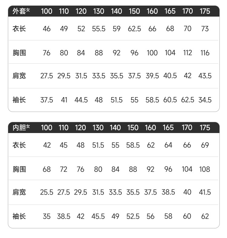 China (cm) 160-165/84-86 165-170 / 88-90 167-172 / 92-96 168-173 / 98-102 170-176 / 106-110