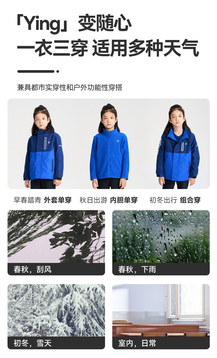 Noseland children's clothing children's three-in-one assault jacket outerwear for boys and girls windproof warm jacket tops autumn and winter