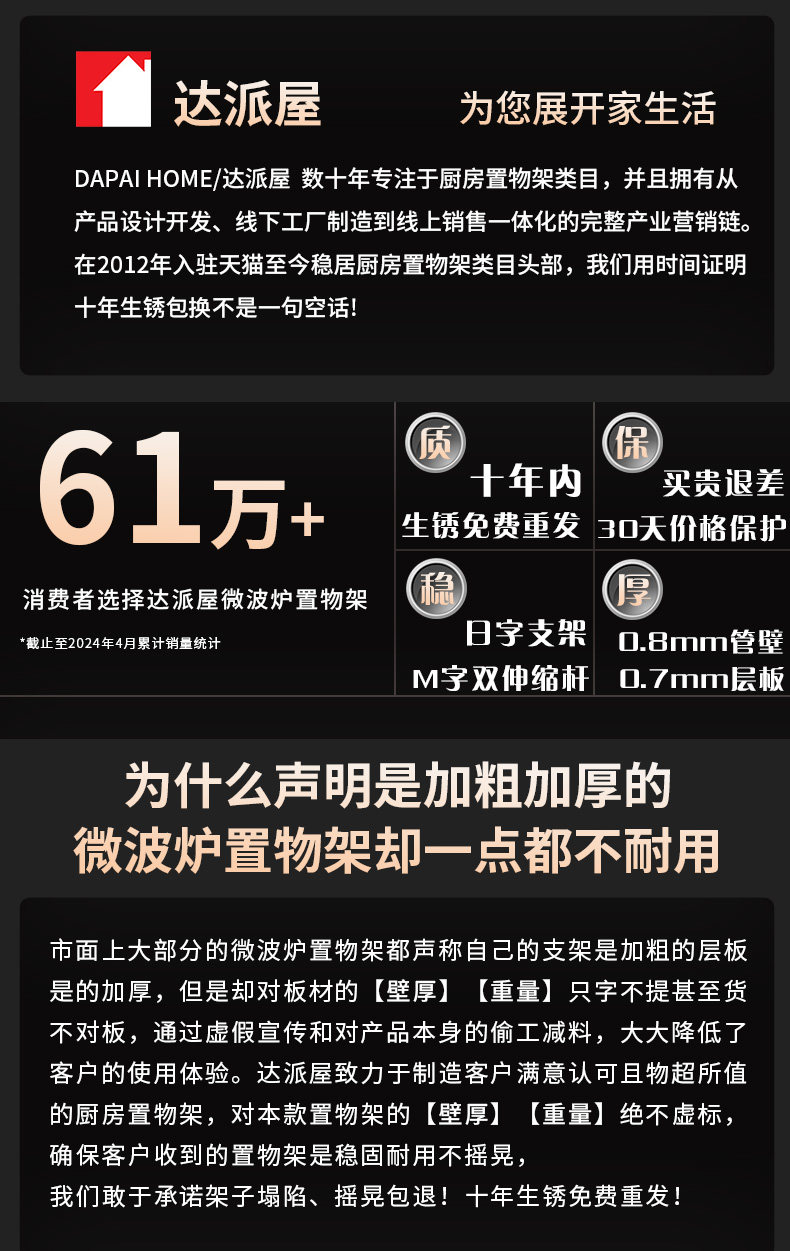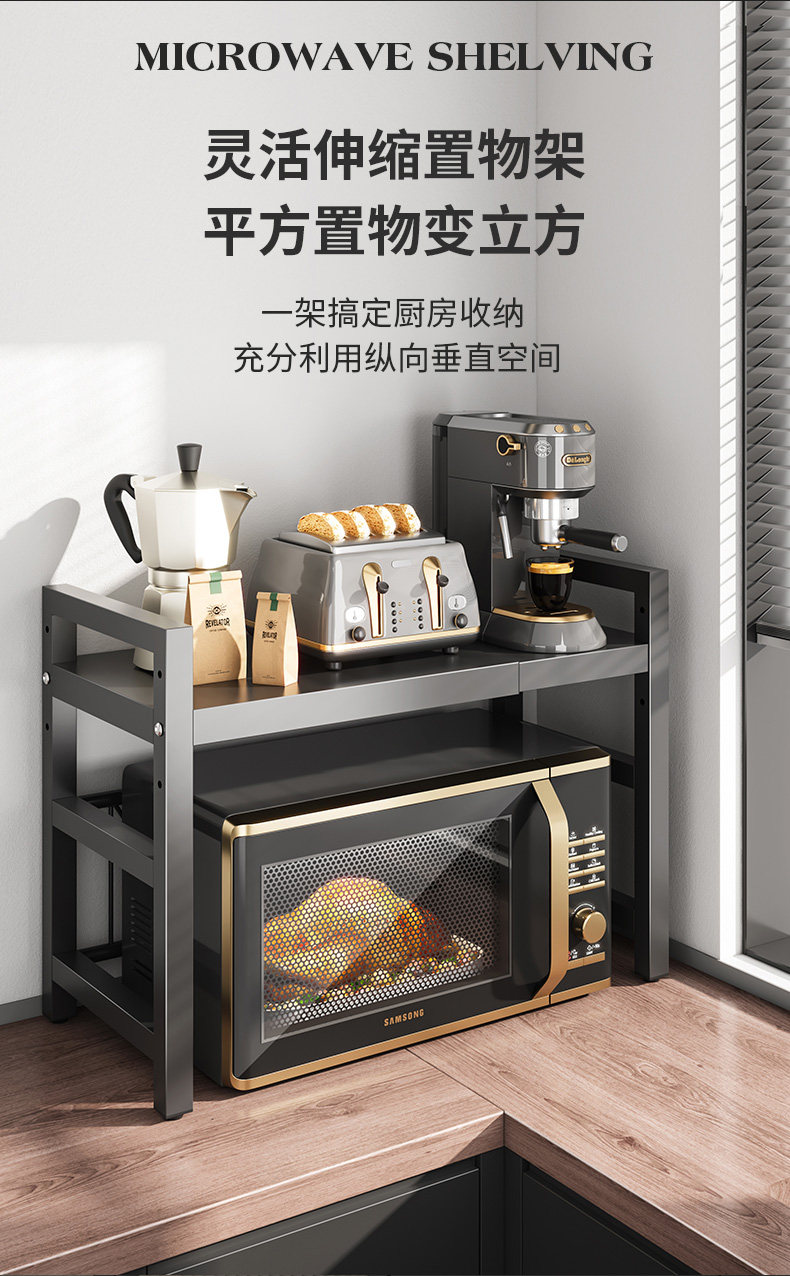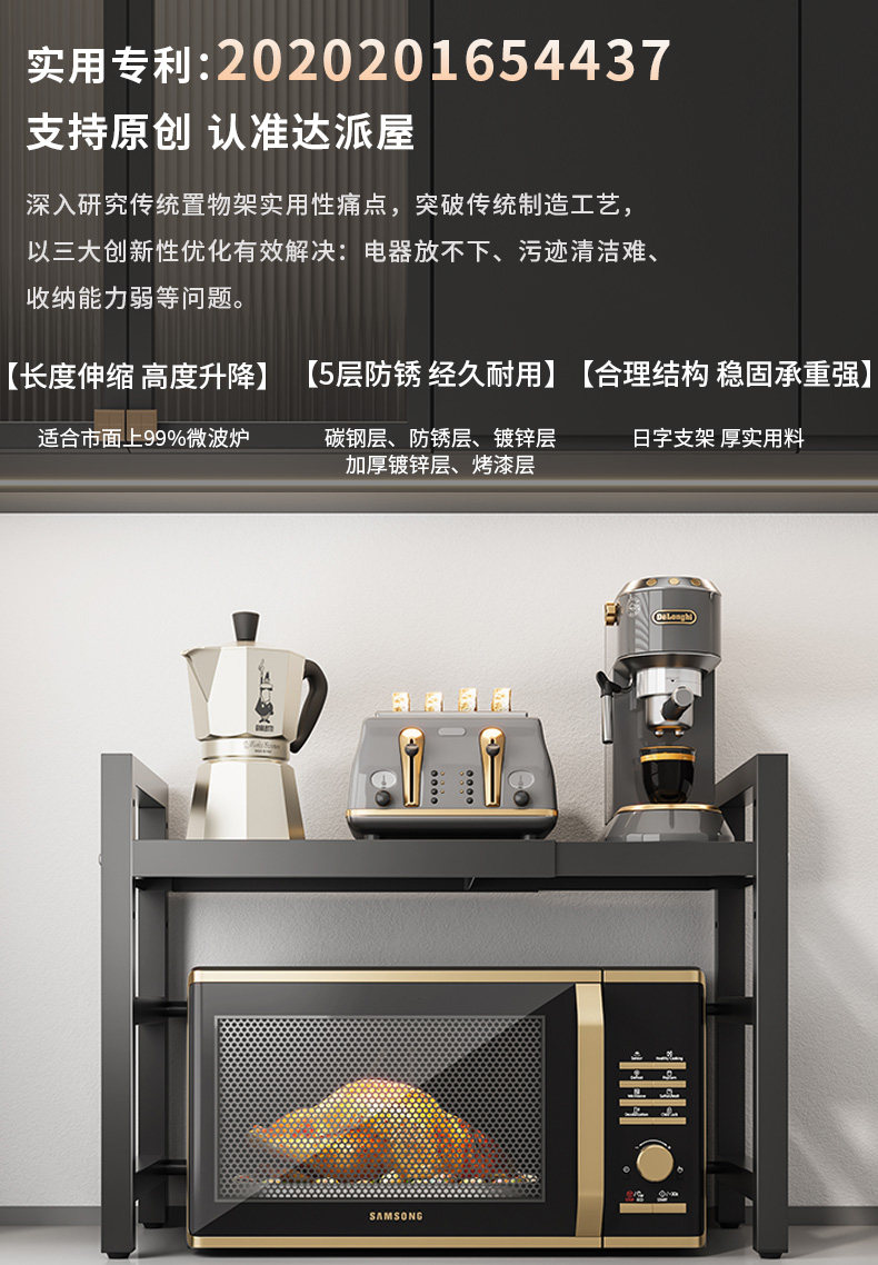 达派屋厨房置物架微波炉架子烤箱收纳可伸缩双层台面桌多功能橱柜