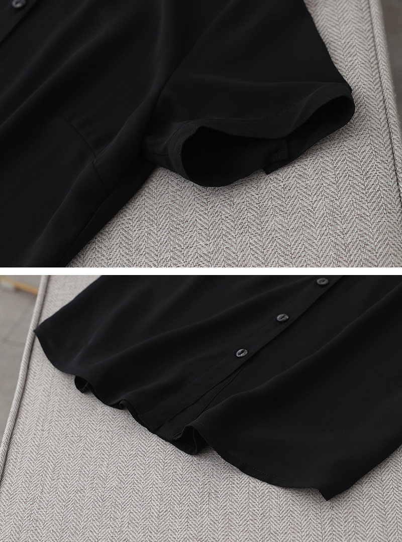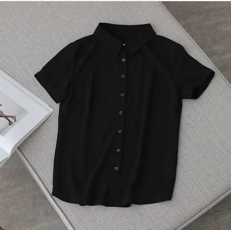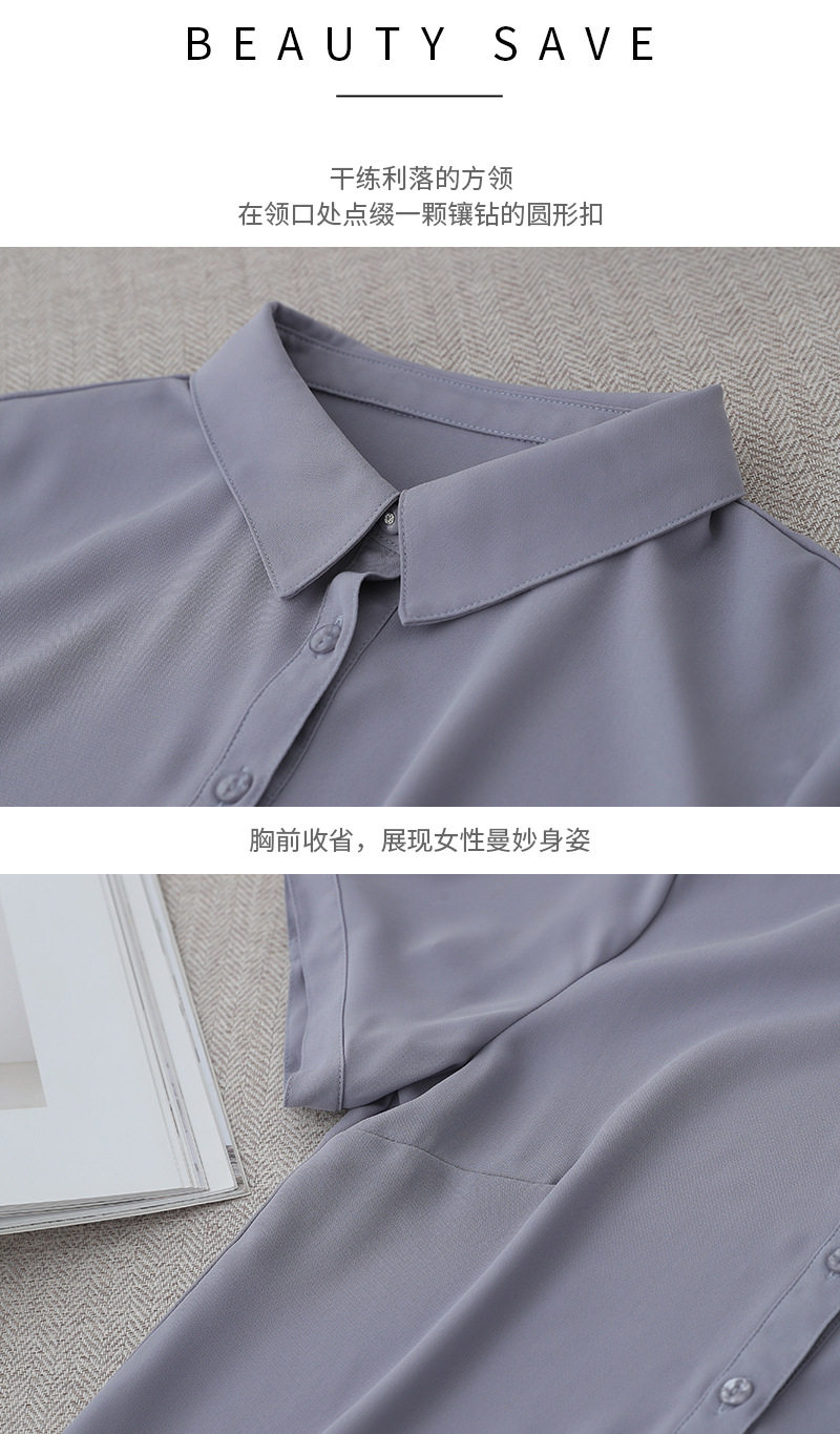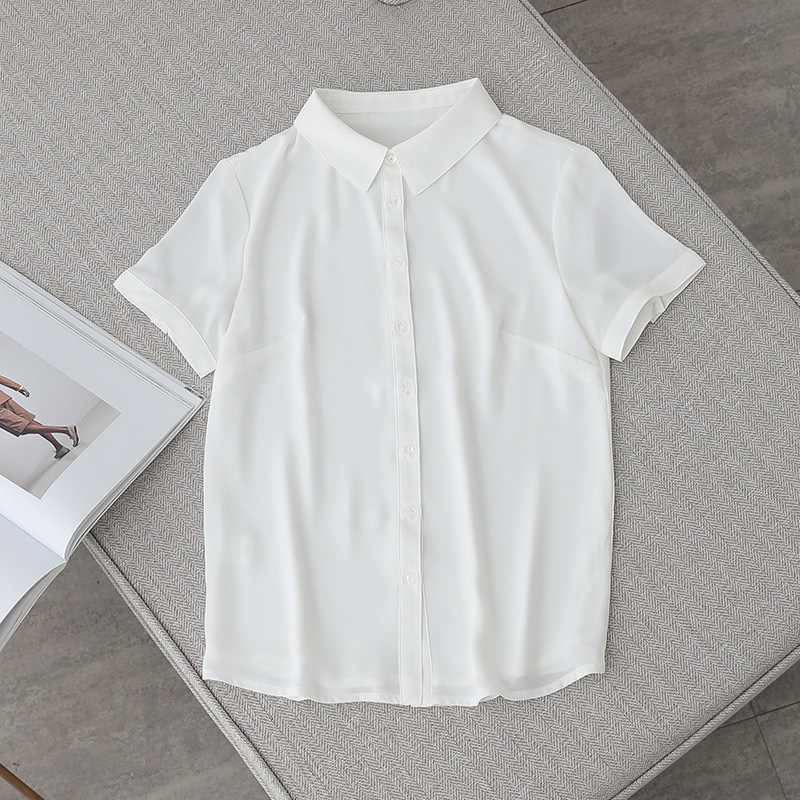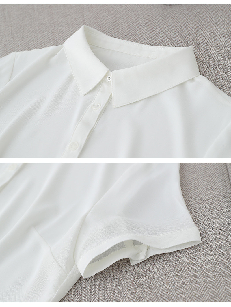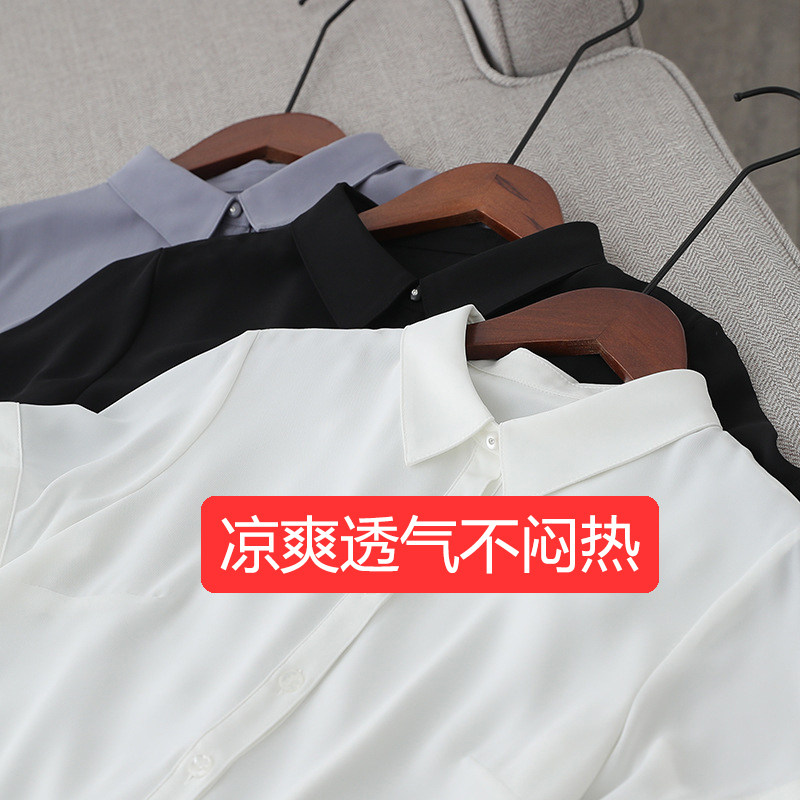 Double-layer anti-seepage light breathable chiffon shirt women's short-sleeved slim square collar summer business wear temperament drape top