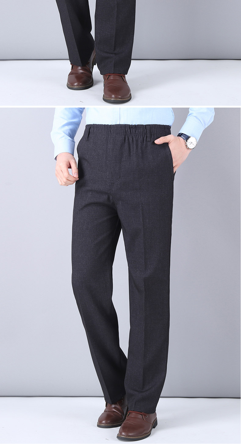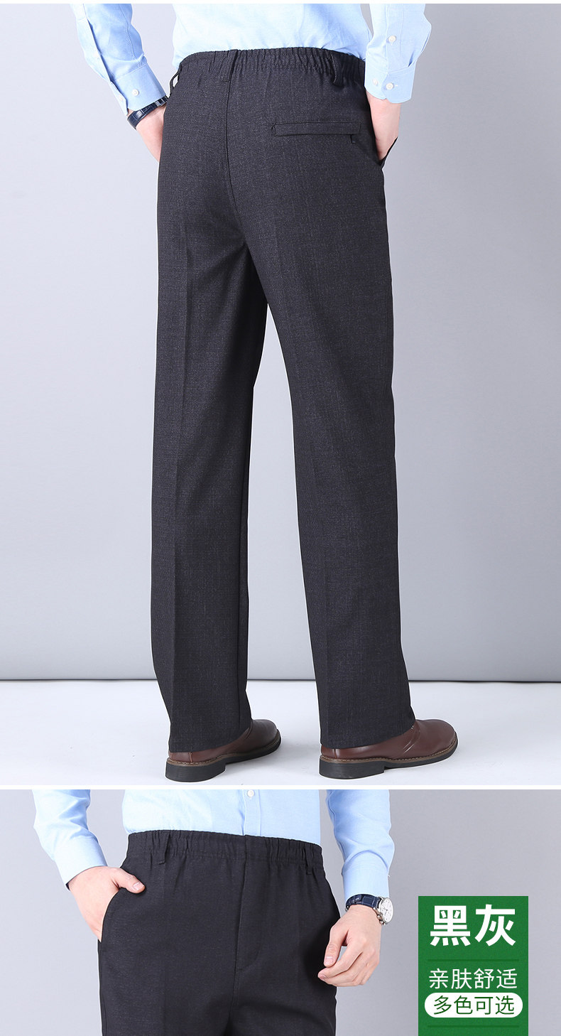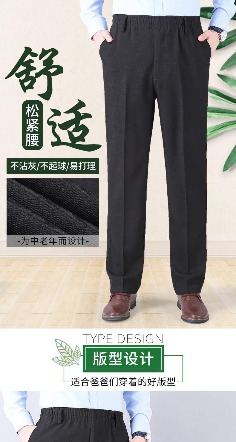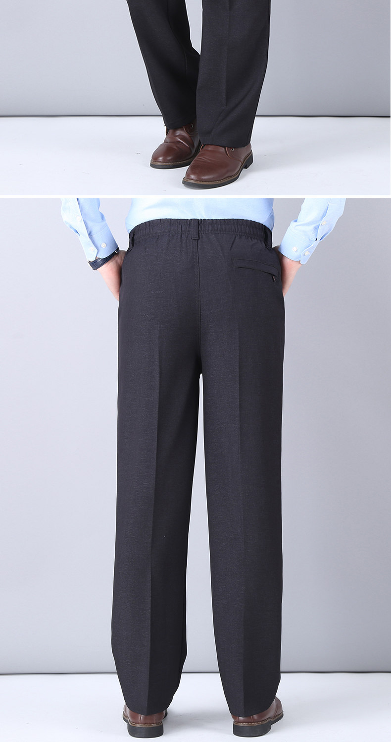 Elderly Men's Pants for Spring and Autumn, Elastic Waist, Loose Fit for Middle-Aged and Elderly Men, Grandpa's Long Pants for Autumn and Winter, Casual High-Waisted Fleece-Lined Men's Pants
