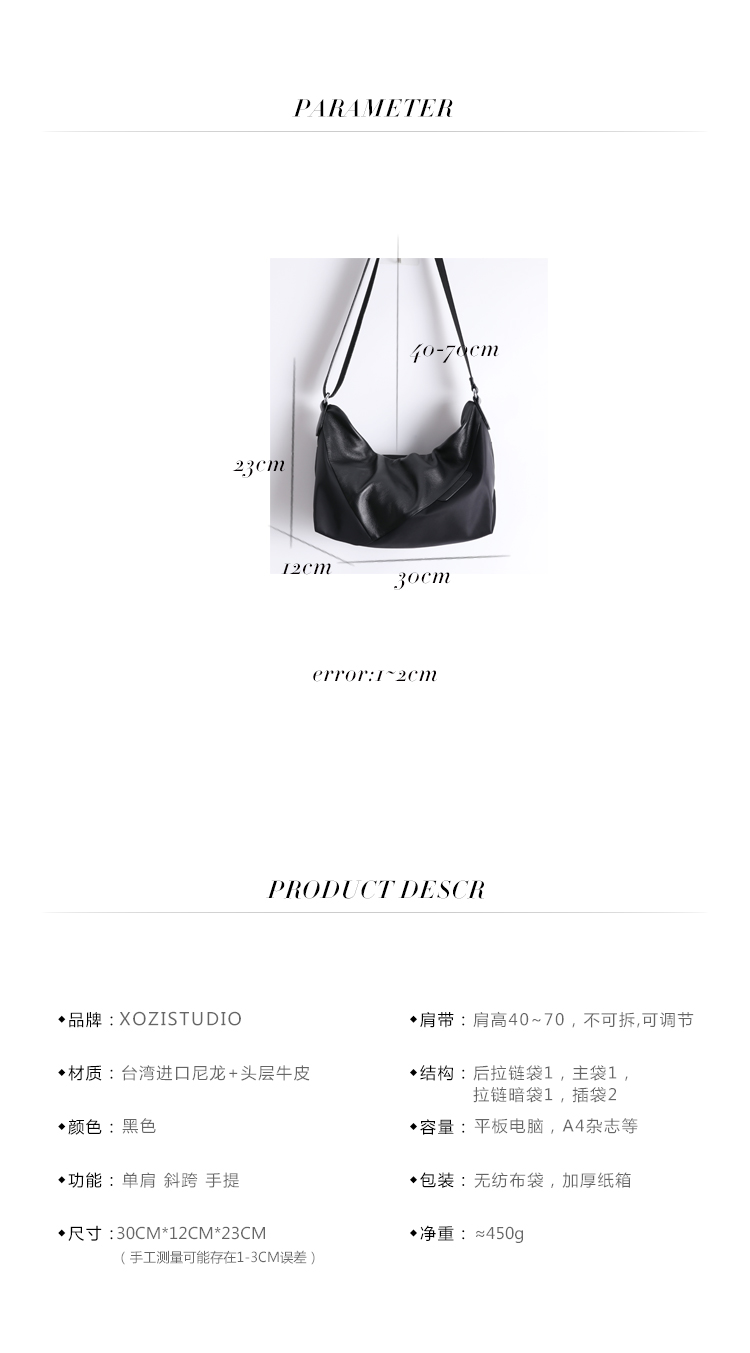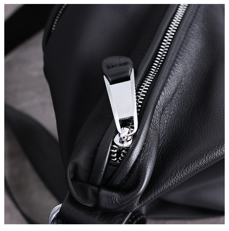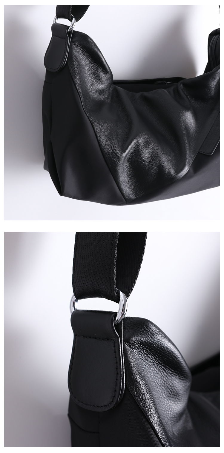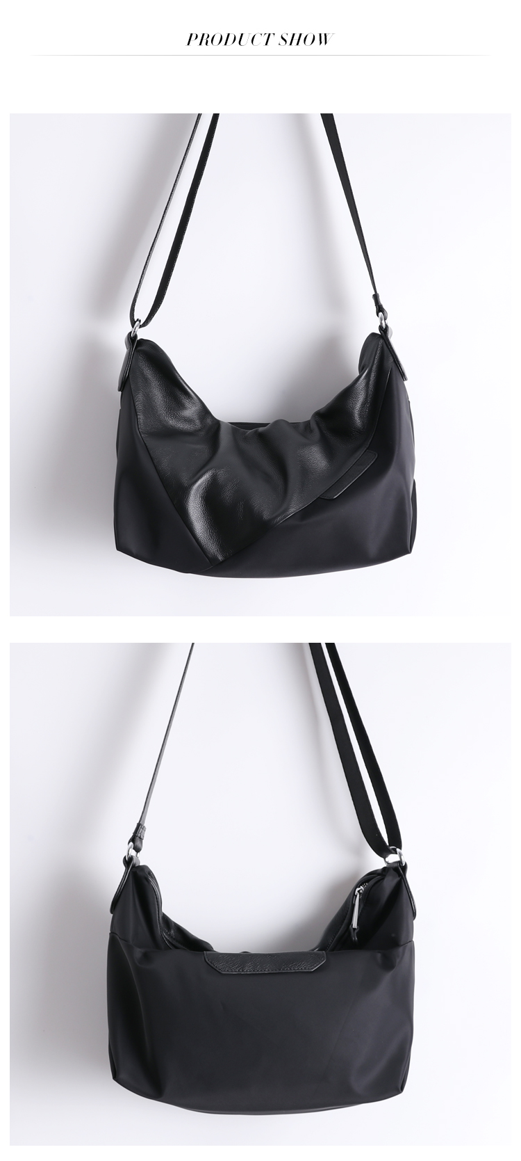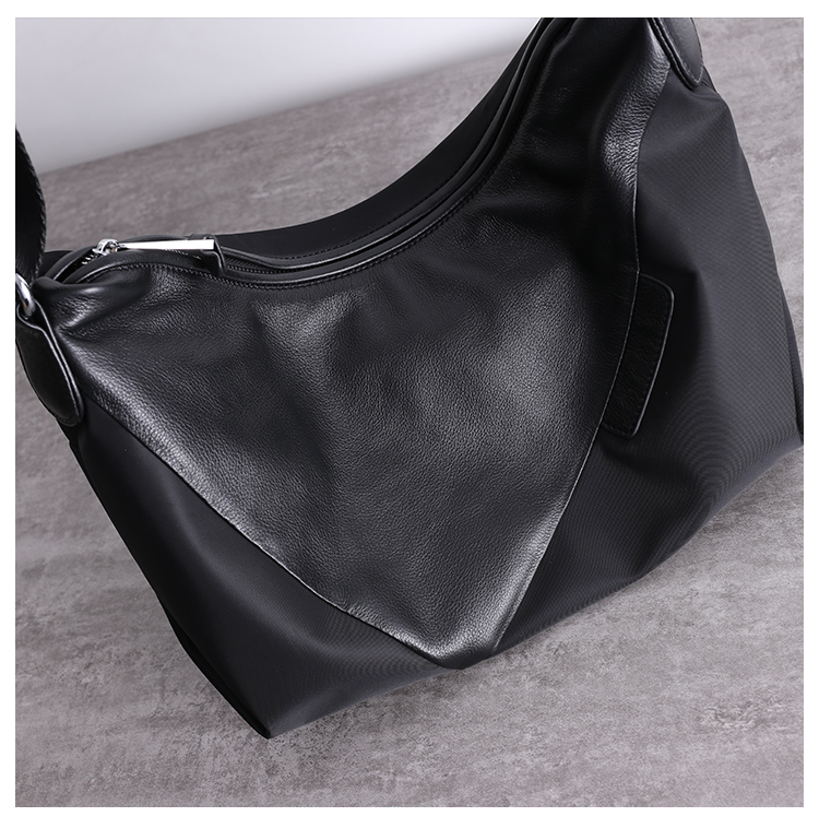 European and American Crescent Bag soft leather shoulder bag nylon with first layer cowhide casual women's bag large capacity Oxford cloth cross-body bag